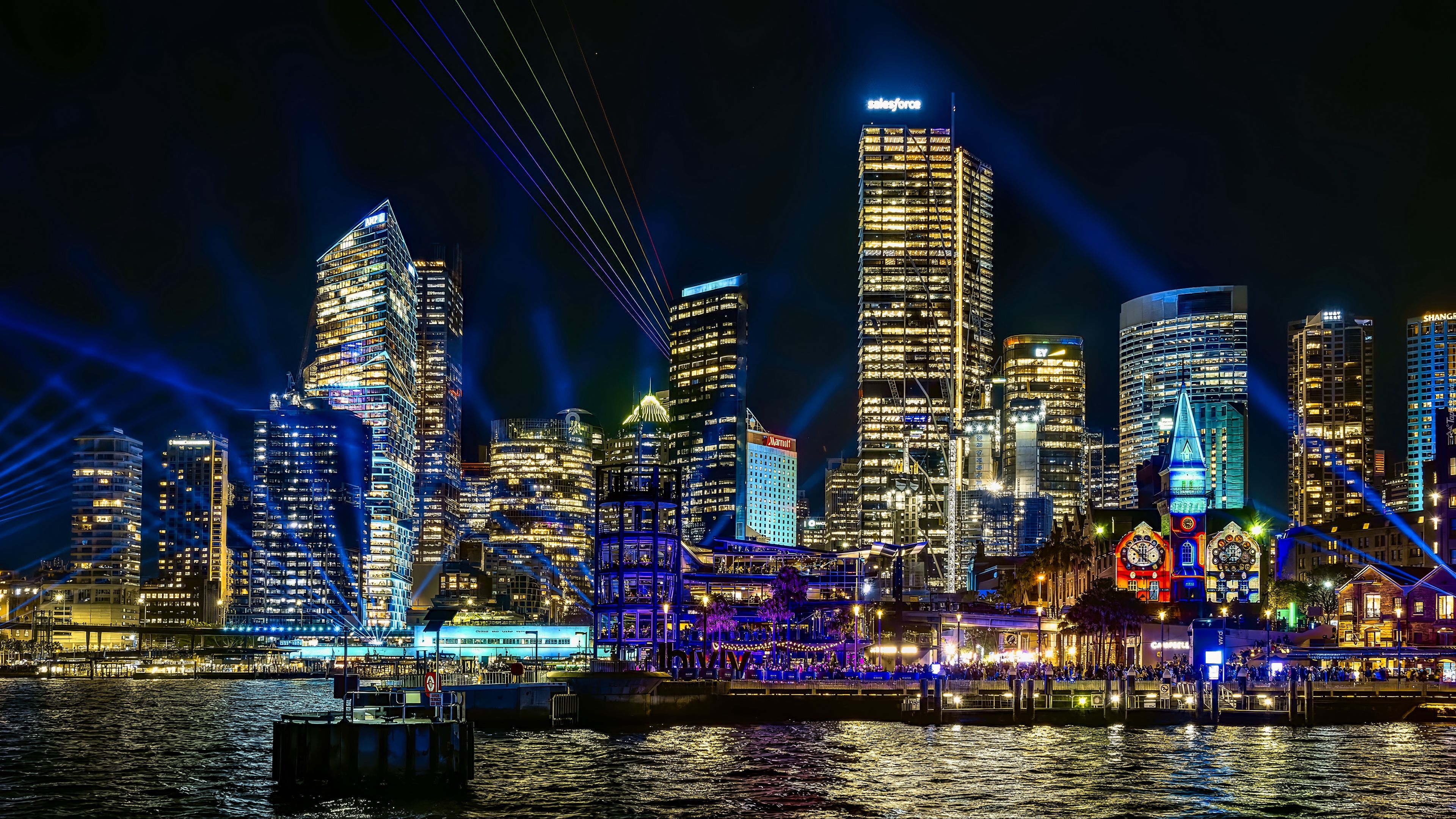 Edytor tapety: Oświetlone nocą wieżowce w Sydney