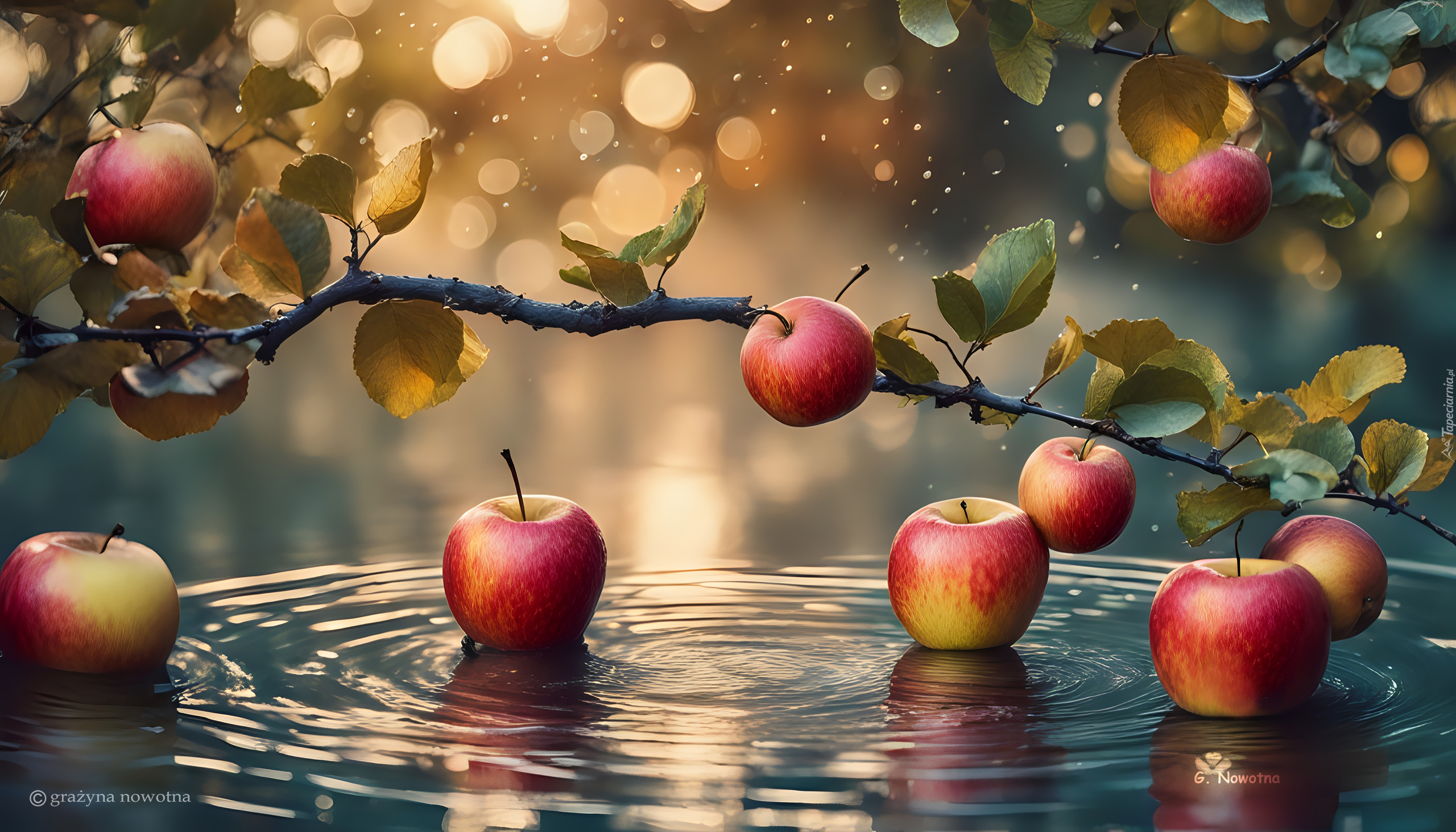Edytor tapety: Jabłka na wodzie i na gałązce