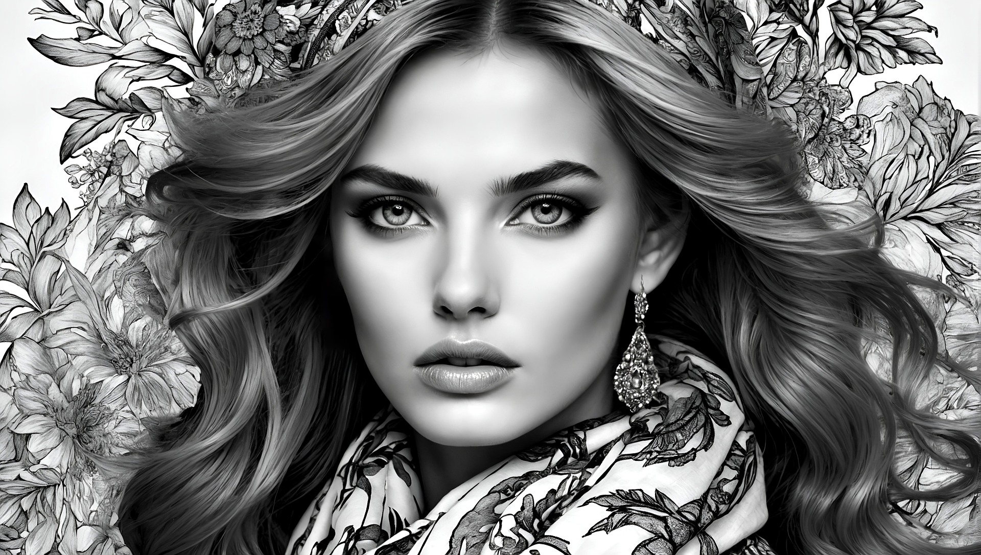 Edytor tapety: Czarno-biała grafika twarzy kobiety