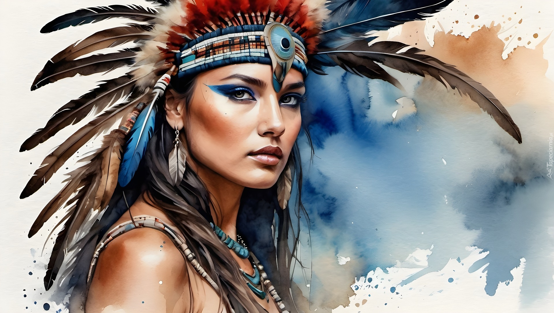 Edytor tapety: Kolorowa grafika kobiety w pióropuszu