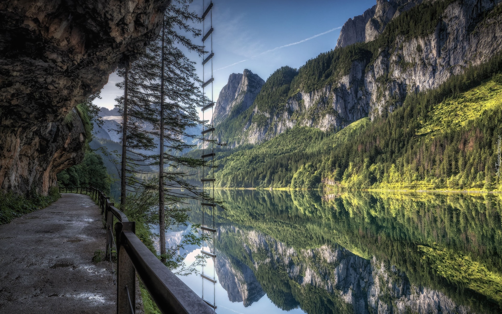 Edytor tapety: Droga pod skałami nad jeziorem Gosausee w Austrii