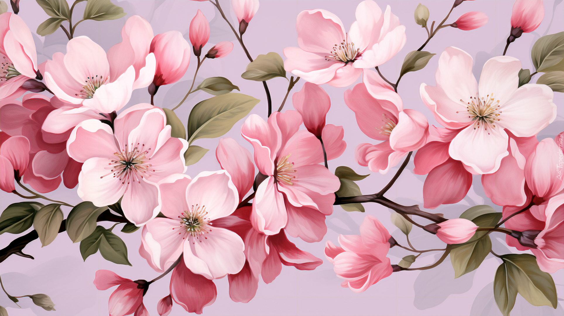 Edytor tapety: Jasnoróżowe kwiaty drzewa owocowego na gałązce
