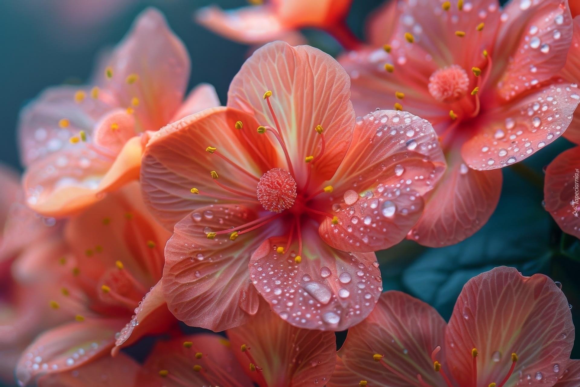 Edytor tapety: Krople na pomarańczowych rozwiniętych kwiatach