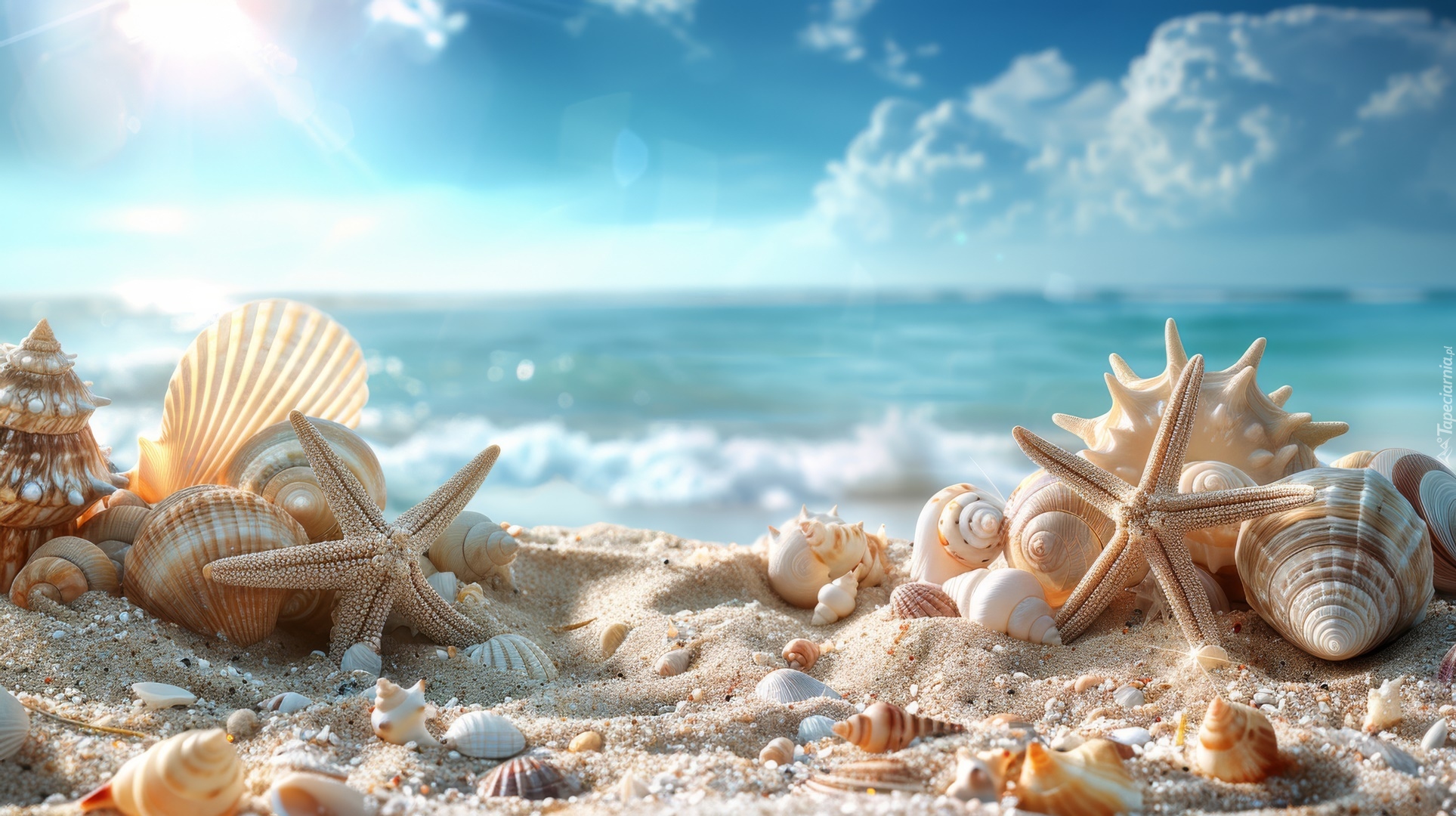 Edytor tapety: Muszle i rozgwiazdy na morskiej plaży