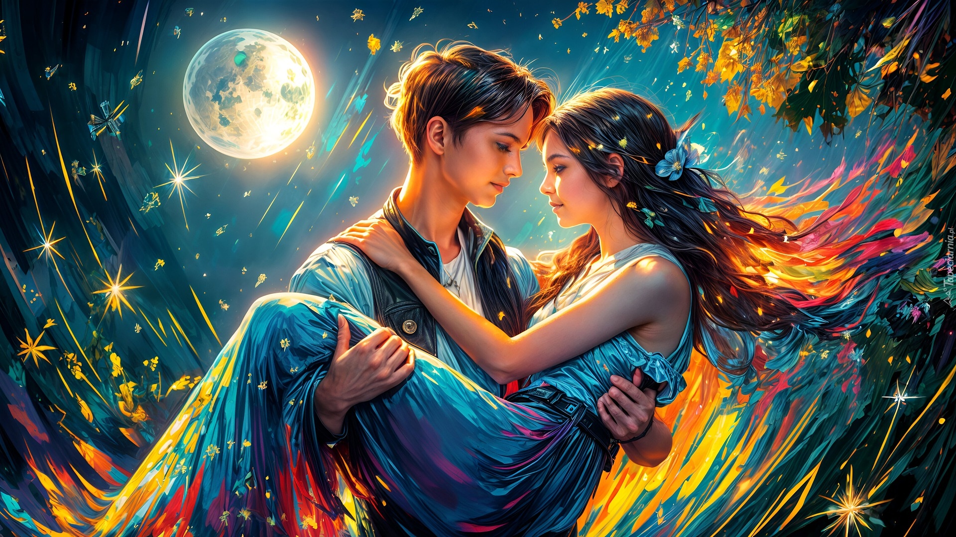 Edytor tapety: Dziewczyna niesiona na rękach przez chłopaka
