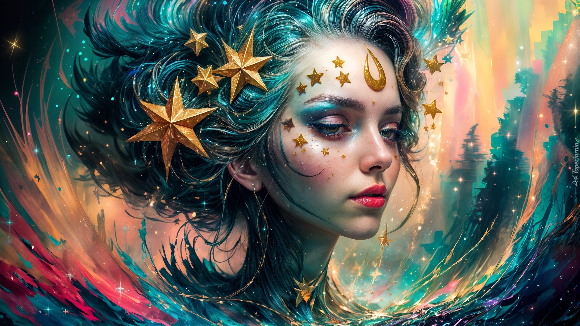 Edytor tapety: Gwiazdy we włosach i na twarzy kobiety