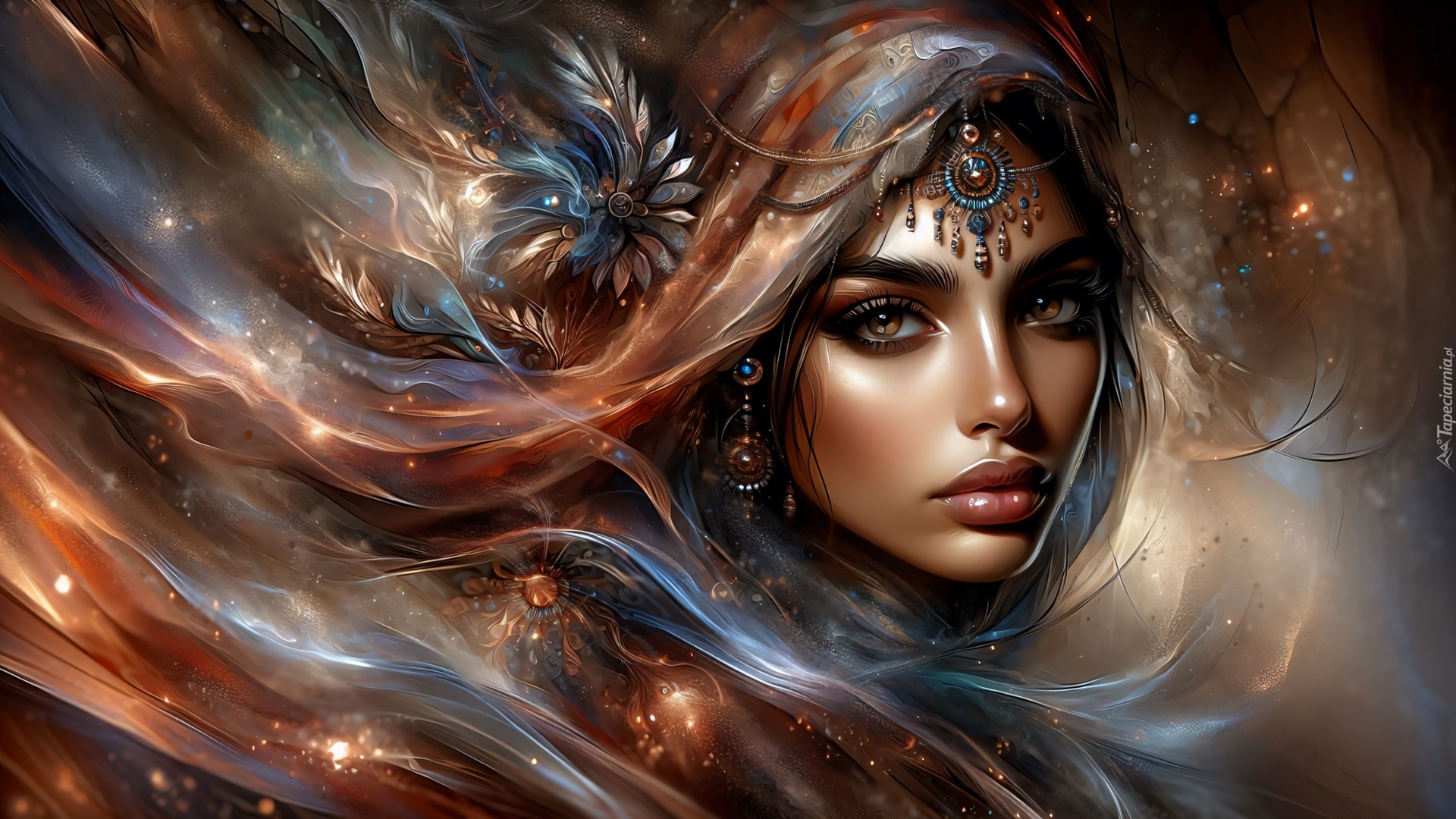 Edytor tapety: Grafika twarzy kobiety z biżuterią