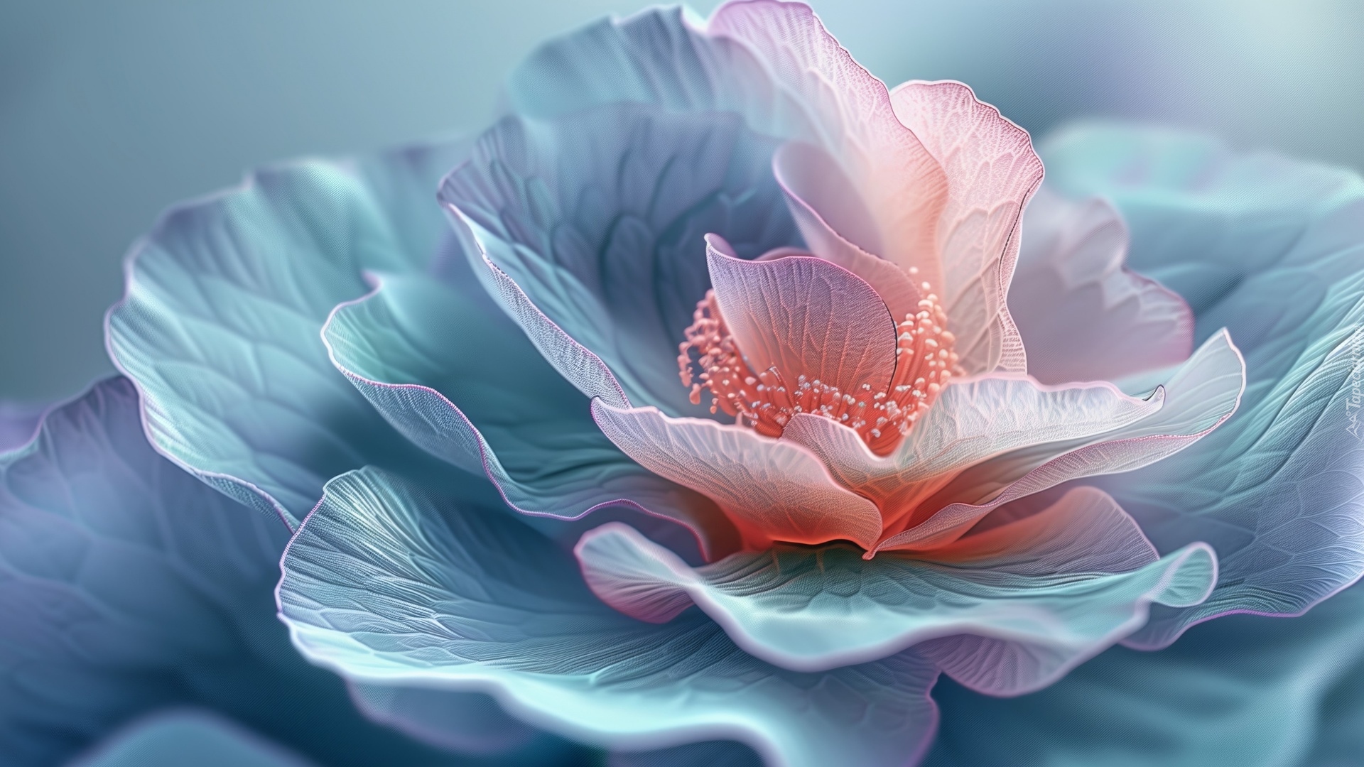 Edytor tapety: Rozwinięty niebiesko-różowy kwiat w zbliżeniu
