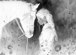 Edytor tapety: Dziewczyna z koniem wśród maków na łące w malarstwie
