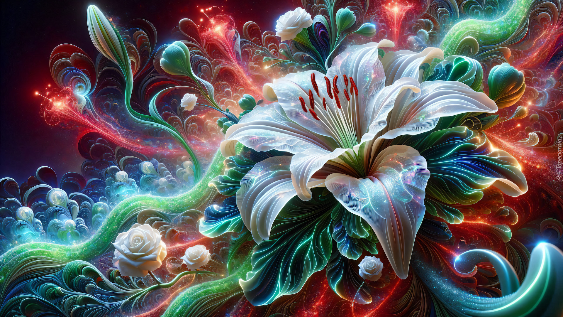Edytor tapety: Rozwinięta lilia na kolorowym tle w grafice