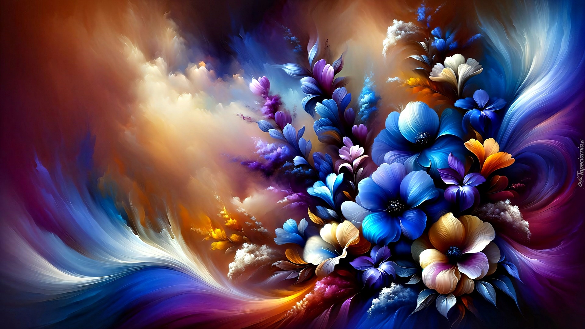 Edytor tapety: Różne kolorowe kwiaty na kolorowym tle w grafice