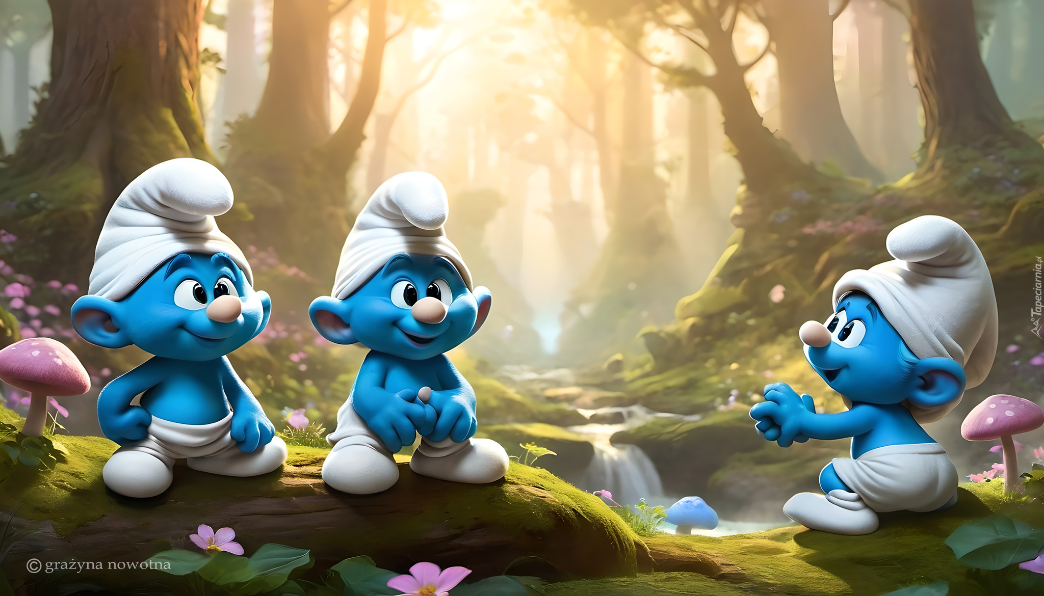 Edytor tapety: Trzy Smerfy w zamglonym lesie