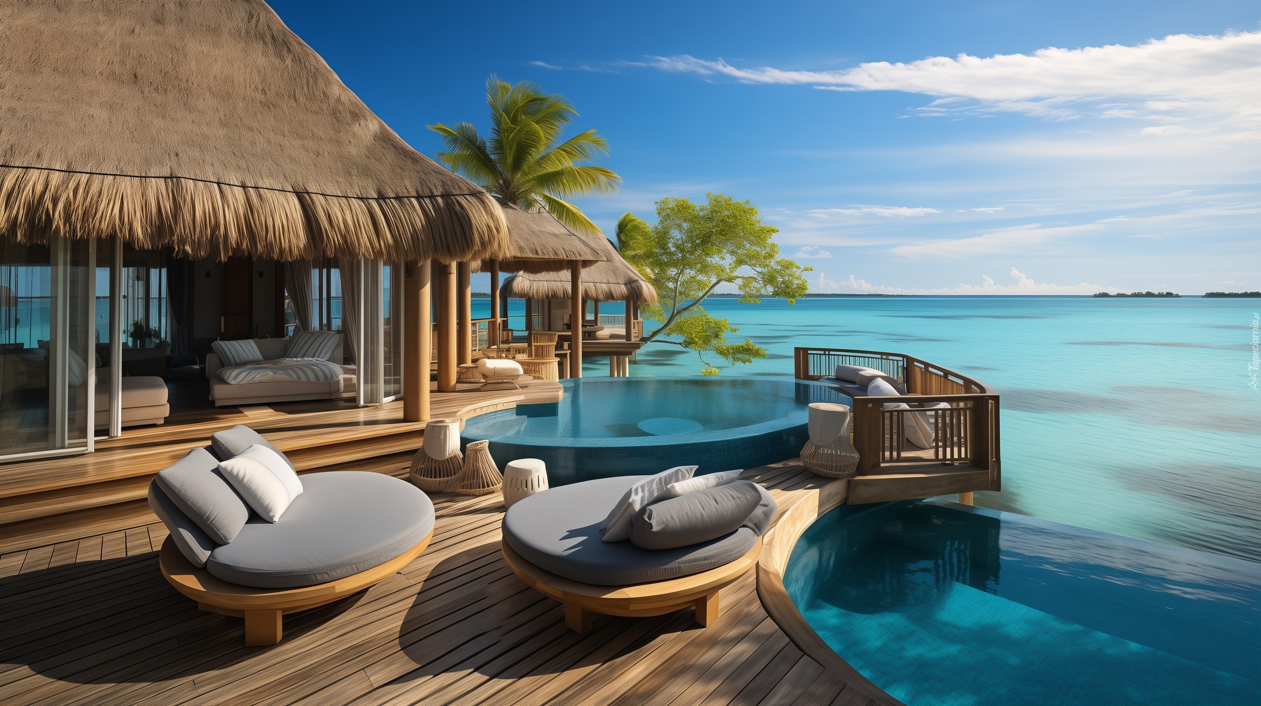 Edytor tapety: Meble wypoczynkowe na tarasie domu nad morzem