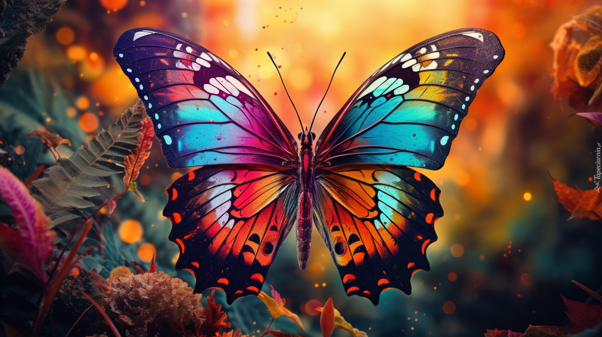 Edytor tapety: Kolorowy motyl na słonecznym tle w grafice