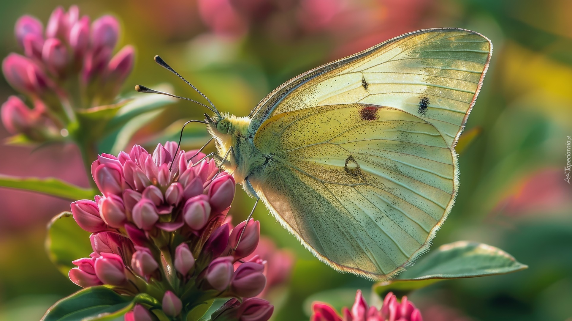 Edytor tapety: Bielinek kapustnik na pąkach rozkwitających kwiatów