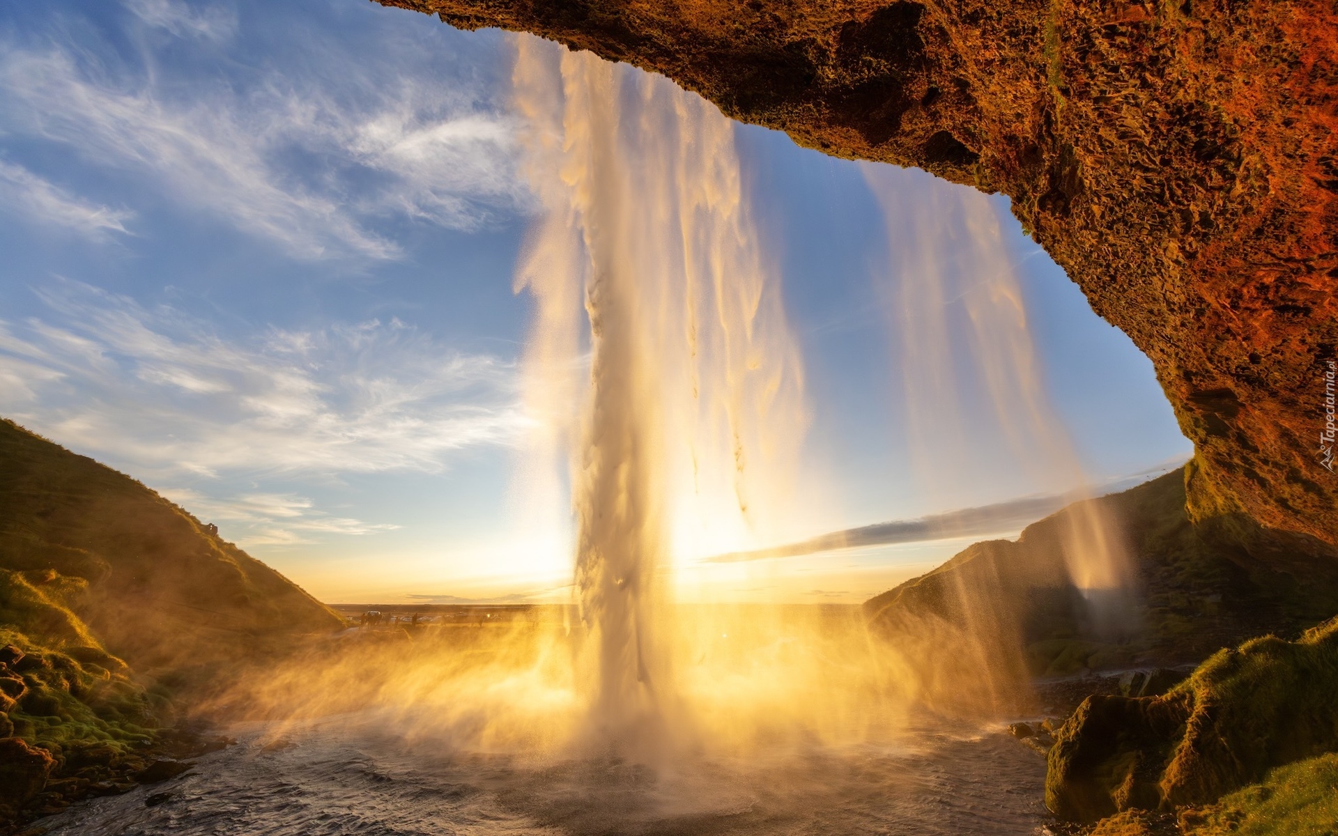 Edytor tapety: Islandzki wodospad Seljalandsfoss w słonecznym blasku