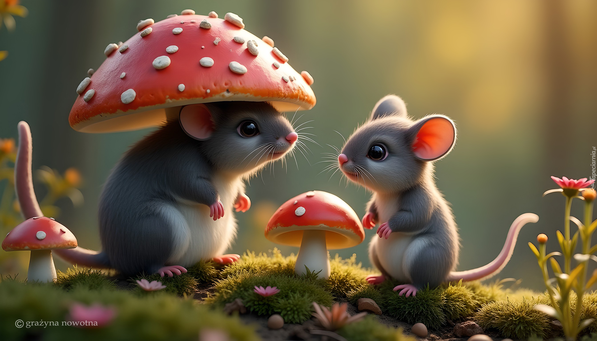 Edytor tapety: Dwie myszki i muchomory w grafice