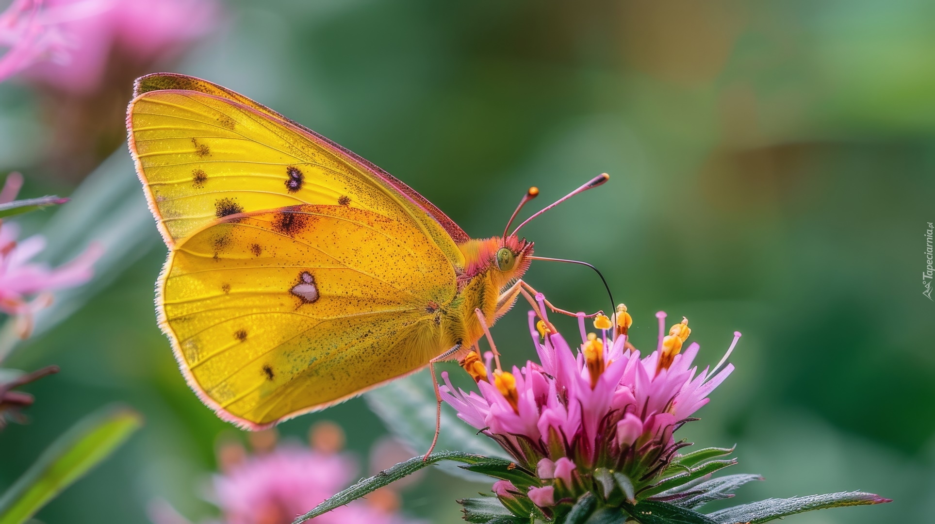 Edytor tapety: Żółty motyl na różowym kwiatku