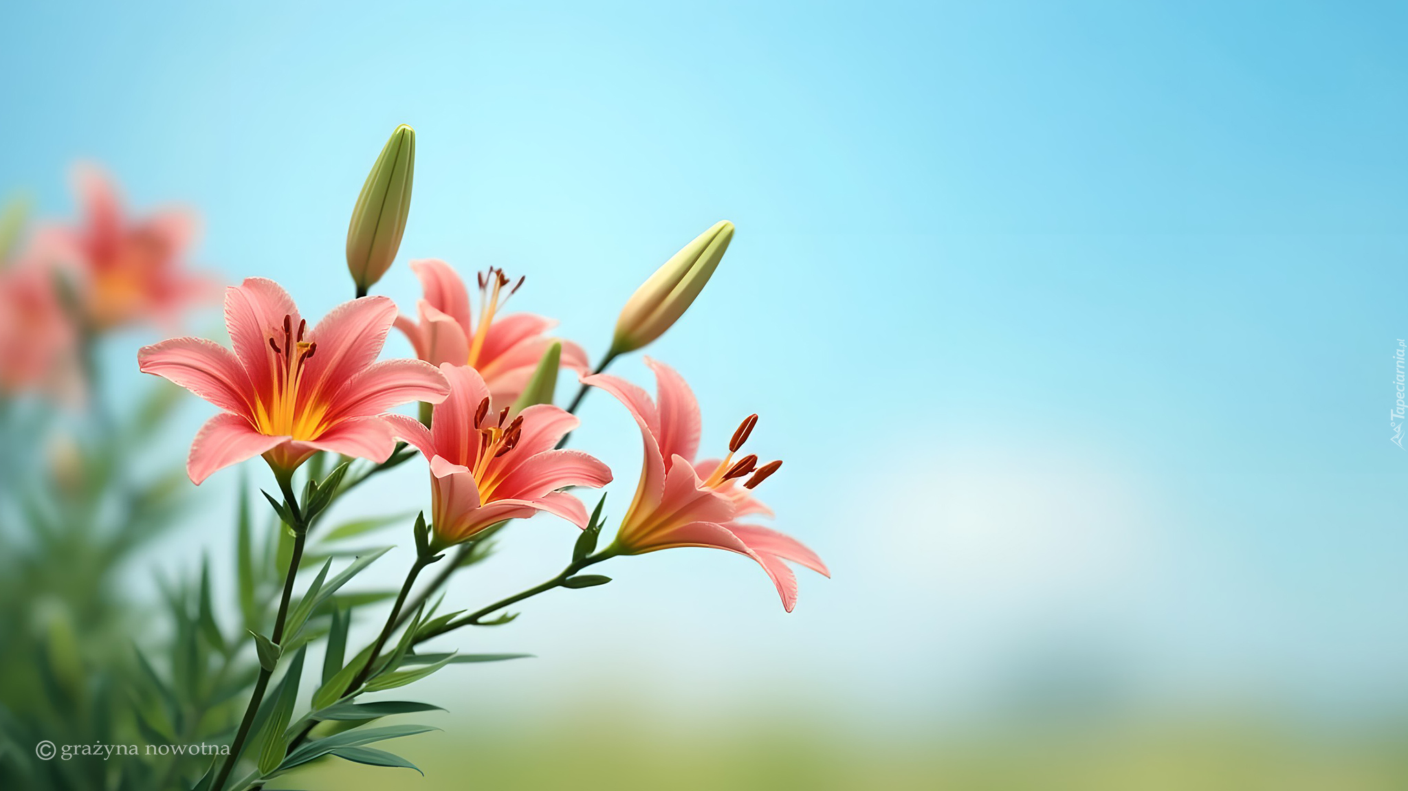 Edytor tapety: Grafika liliowców z pąkami na niebieskim tle