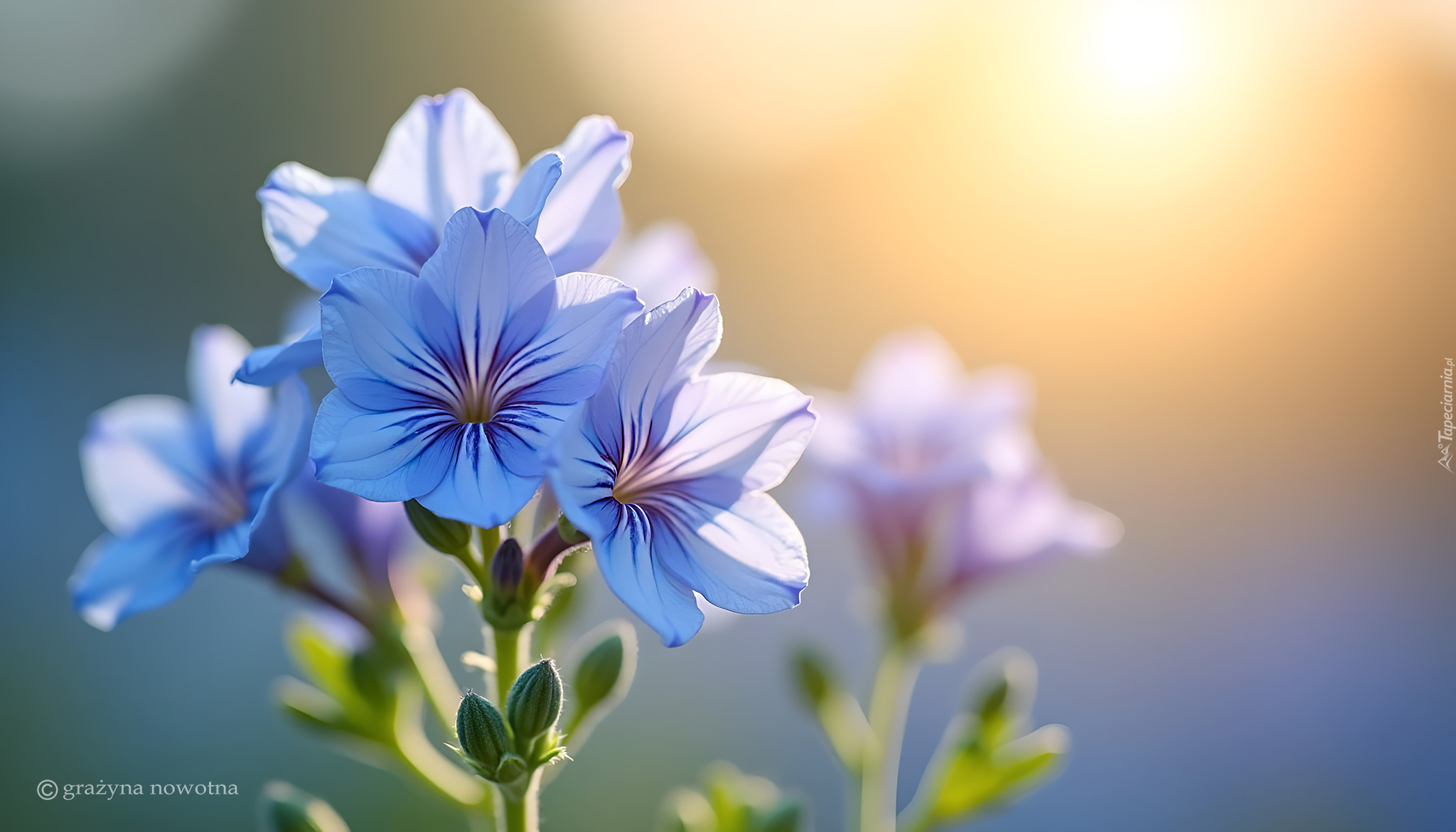 Edytor tapety: Rozświetlone światłem niebieskie kwiaty