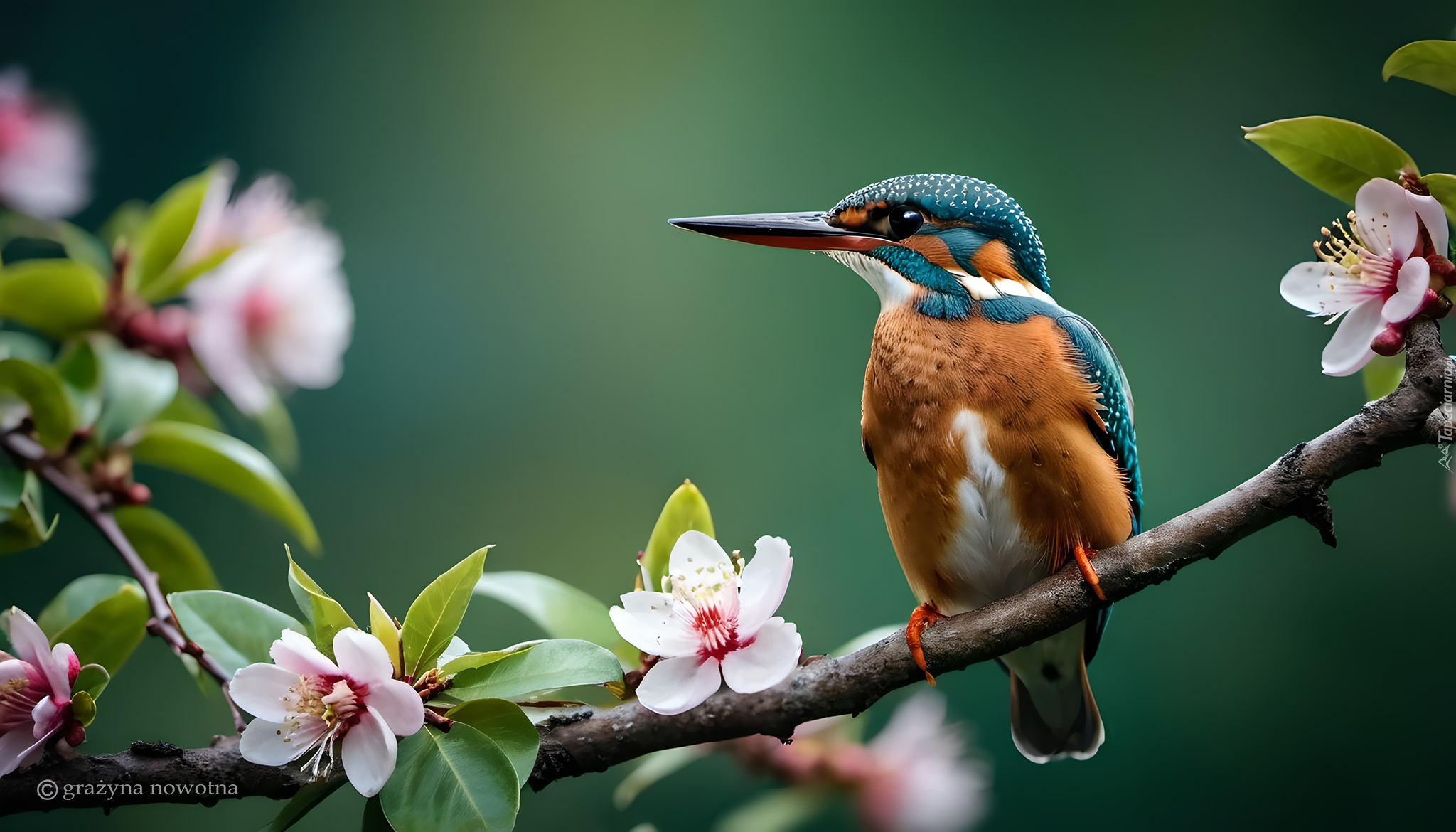 Edytor tapety: Zimorodek na ukwieconej gałęzi