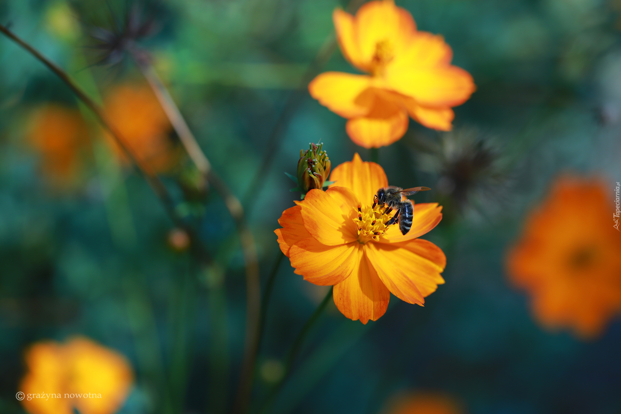 Edytor tapety: Pszczoła i nachyłek na rozmytym tle