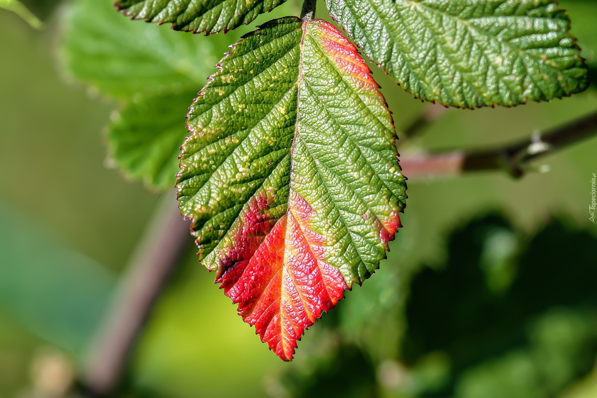 Edytor tapety: Zielono-czerwony liść w zbliżeniu