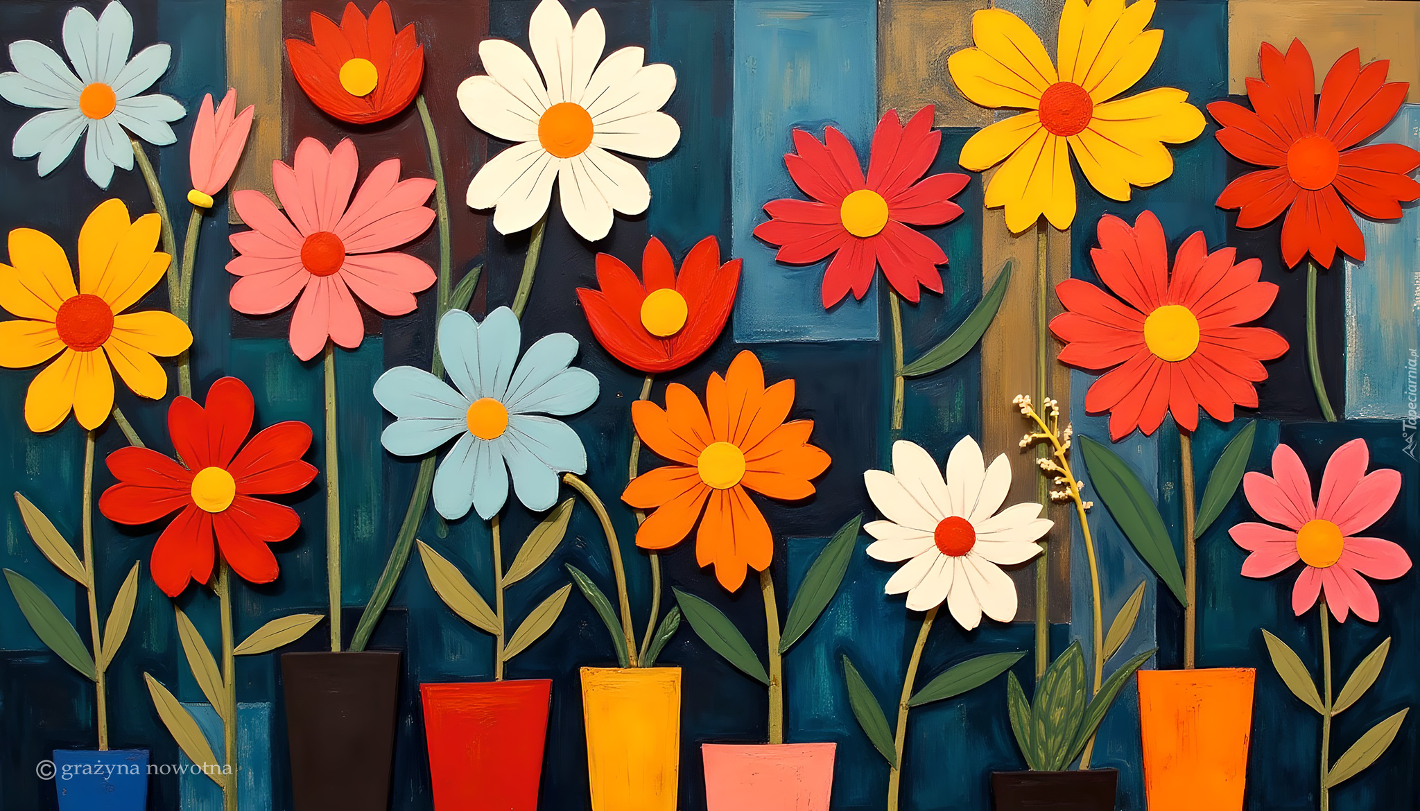 Edytor tapety: Grafika z kolorowymi kwiatami
