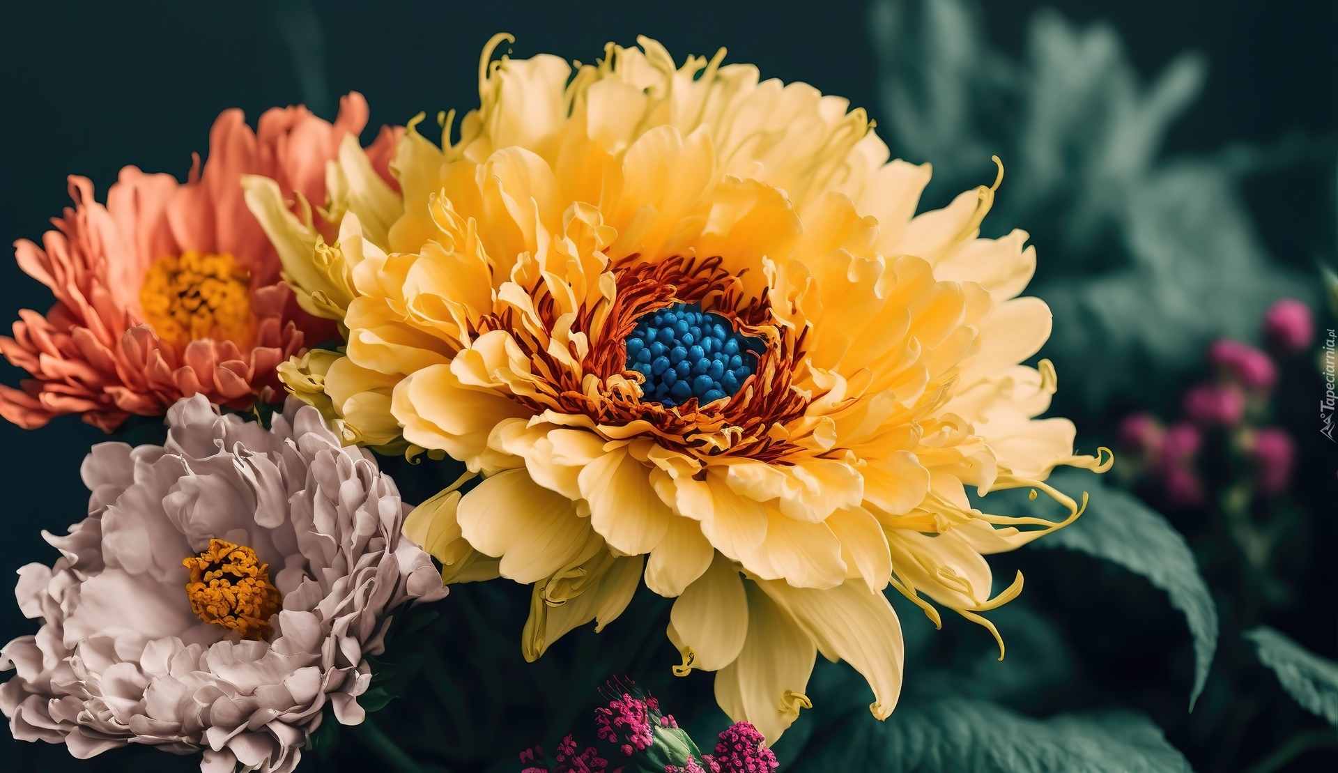 Edytor tapety: Trzy kolorowe kwiaty w grafice