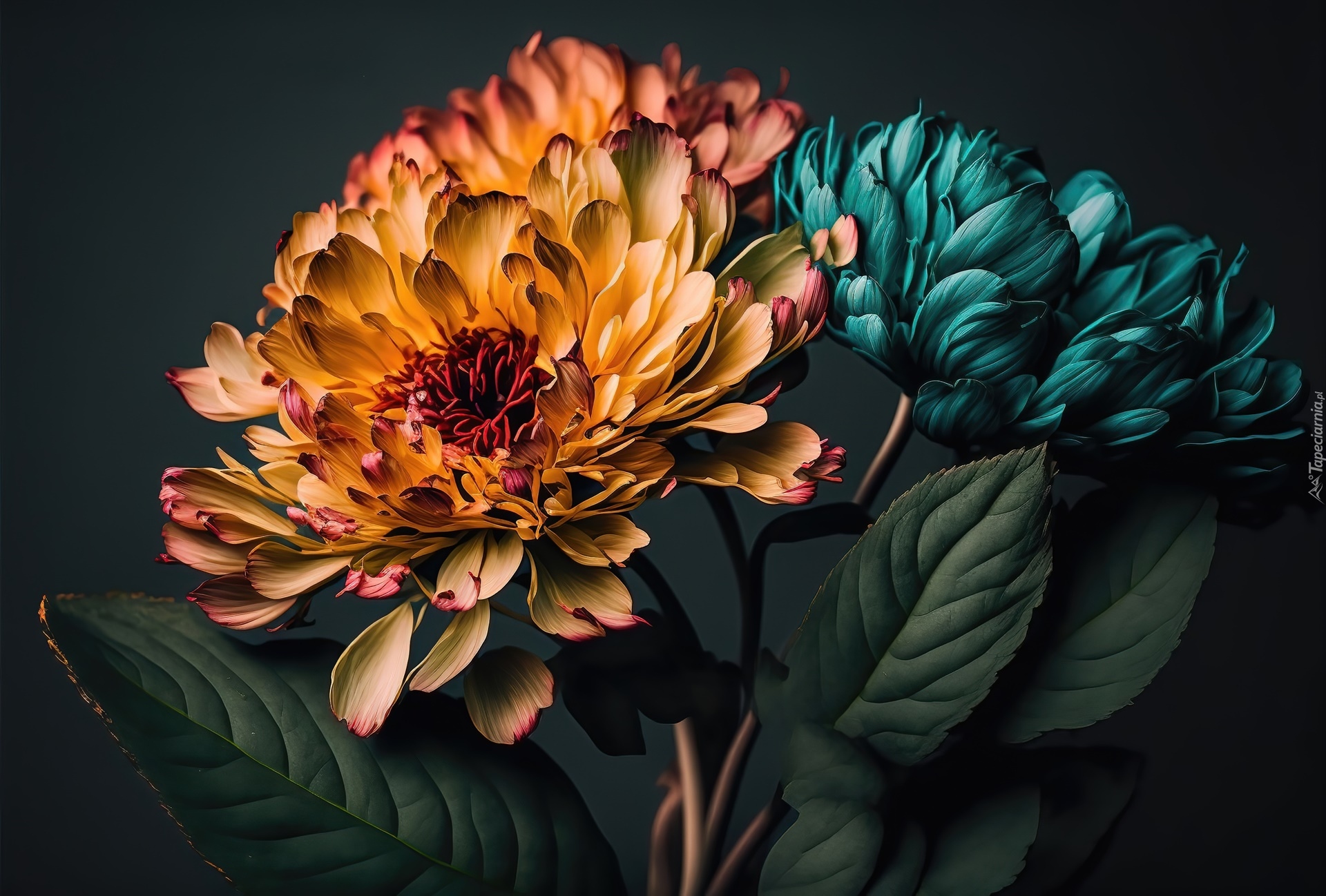 Edytor tapety: Dwa kwiaty na ciemnym tle w grafice