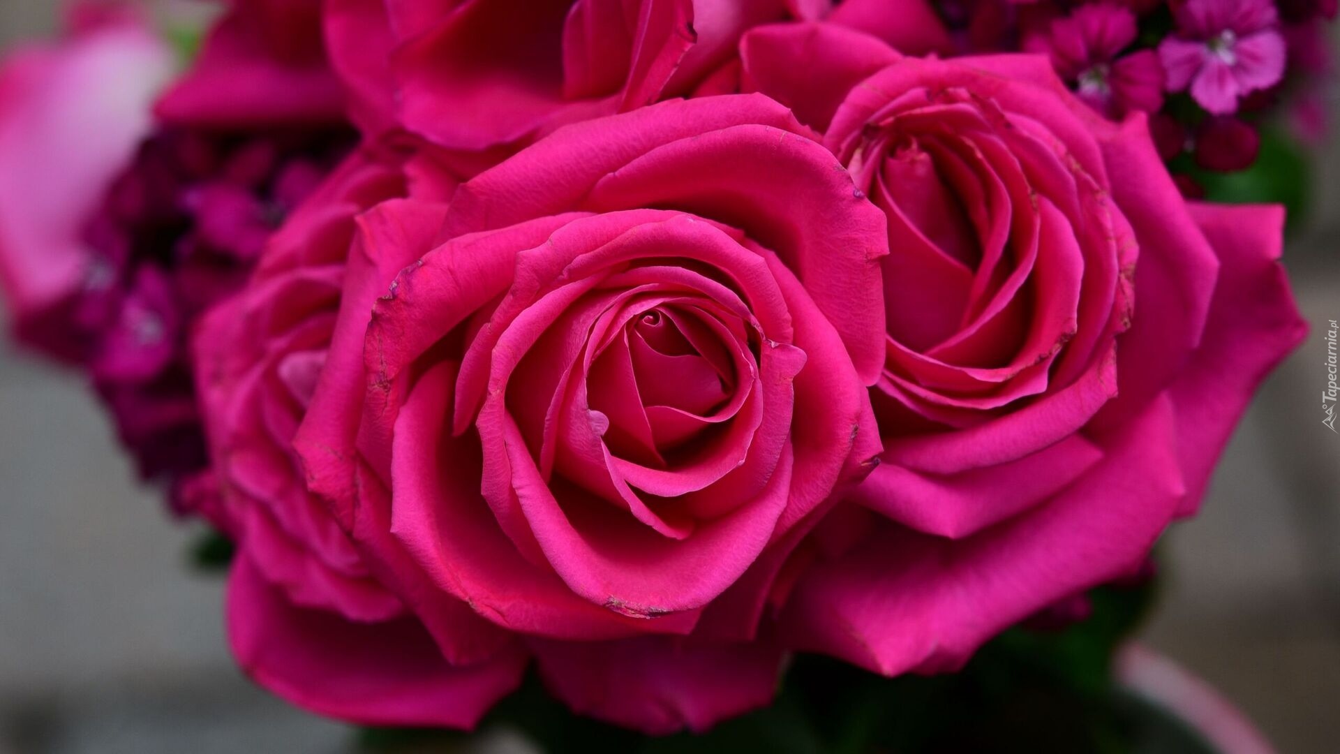 Edytor tapety: Rozwinięte różowe róże w zbliżeniu