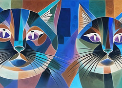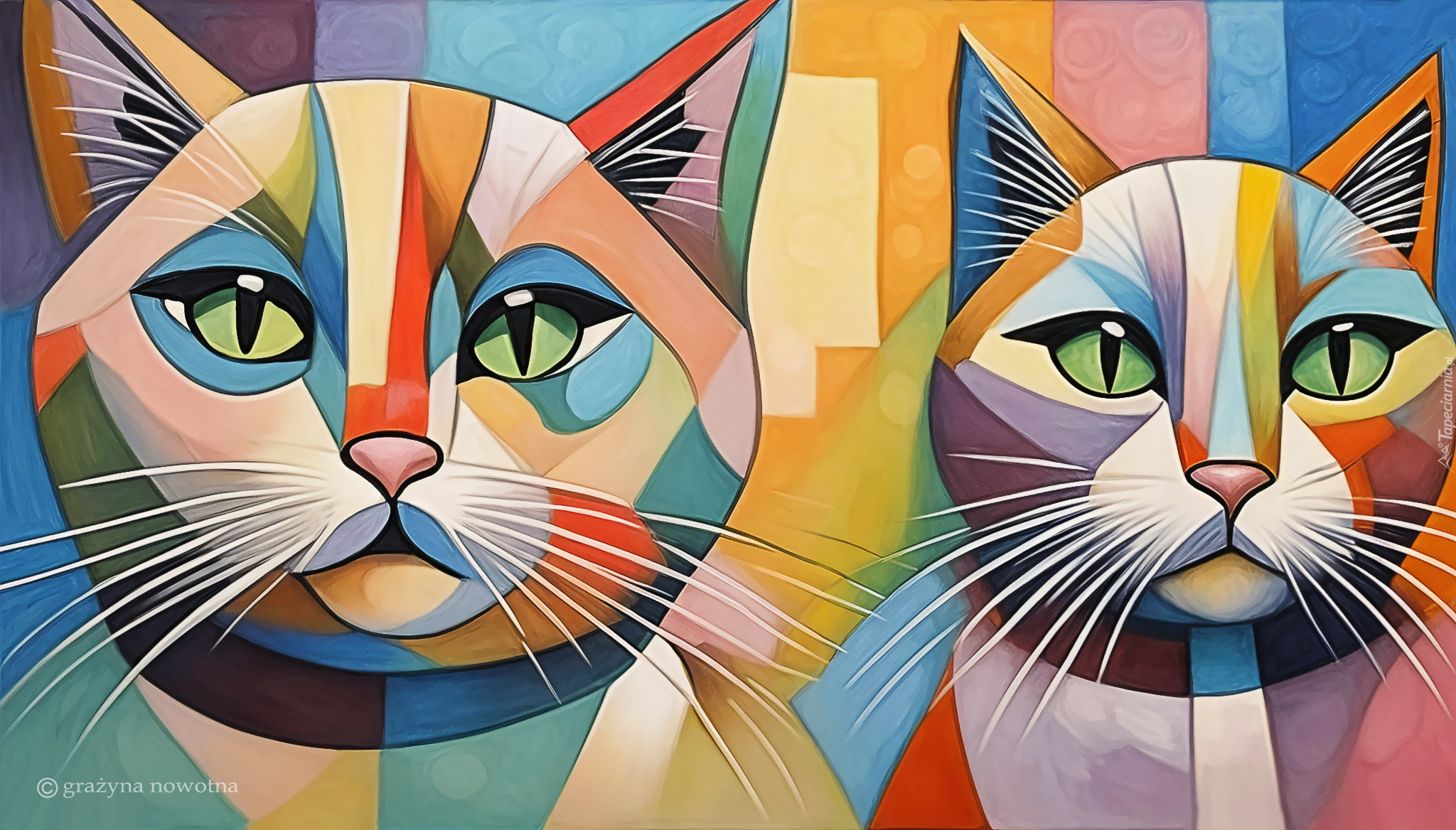 Edytor tapety: Głowy dwóch kolorowych kotów w grafice