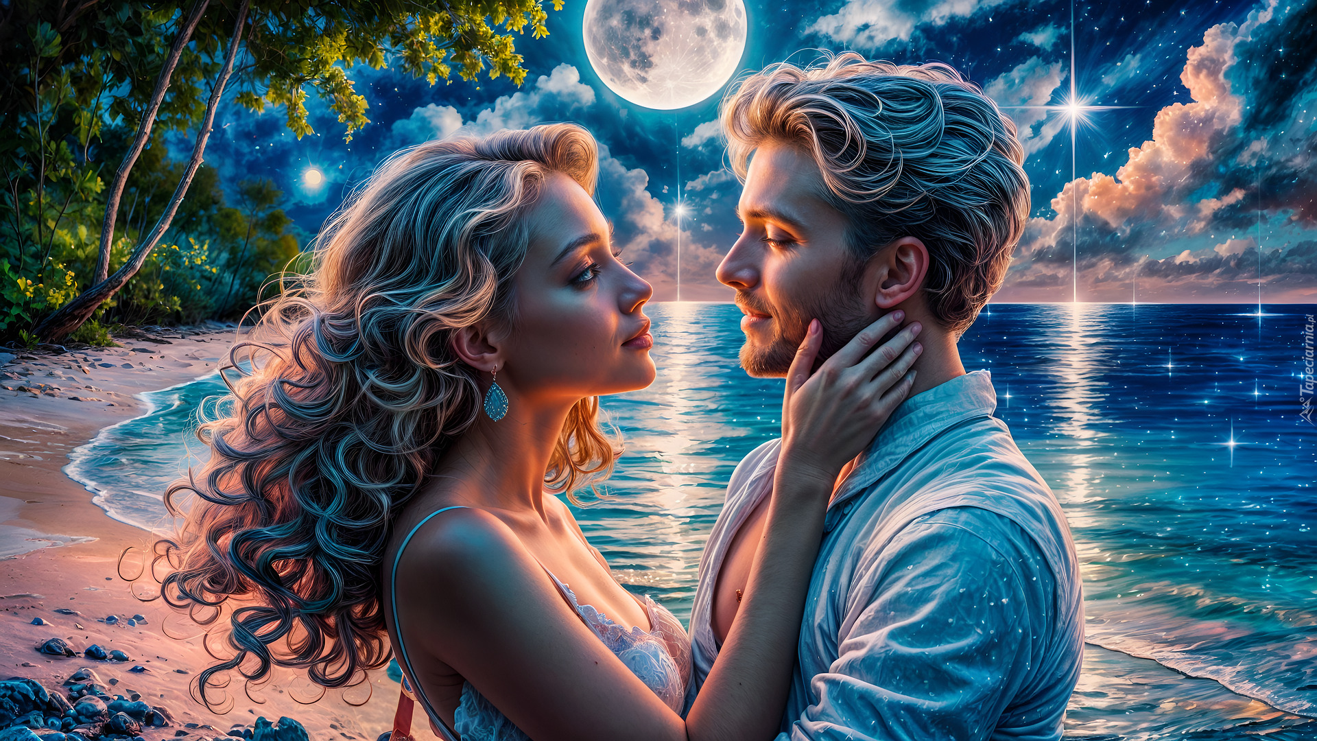 Edytor tapety: Zakochani nad morzem w blasku gwiazd i księżyca