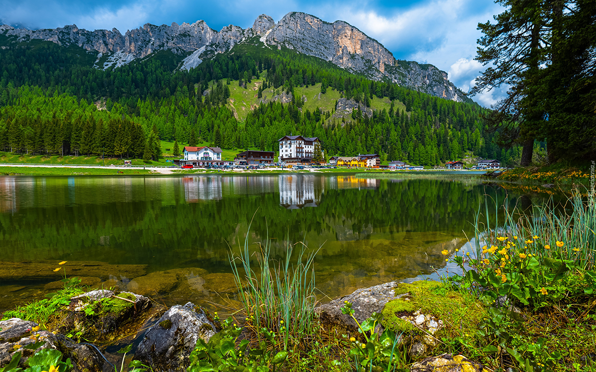 Edytor tapety: Domy nad Lago di Misurina w Dolomitach