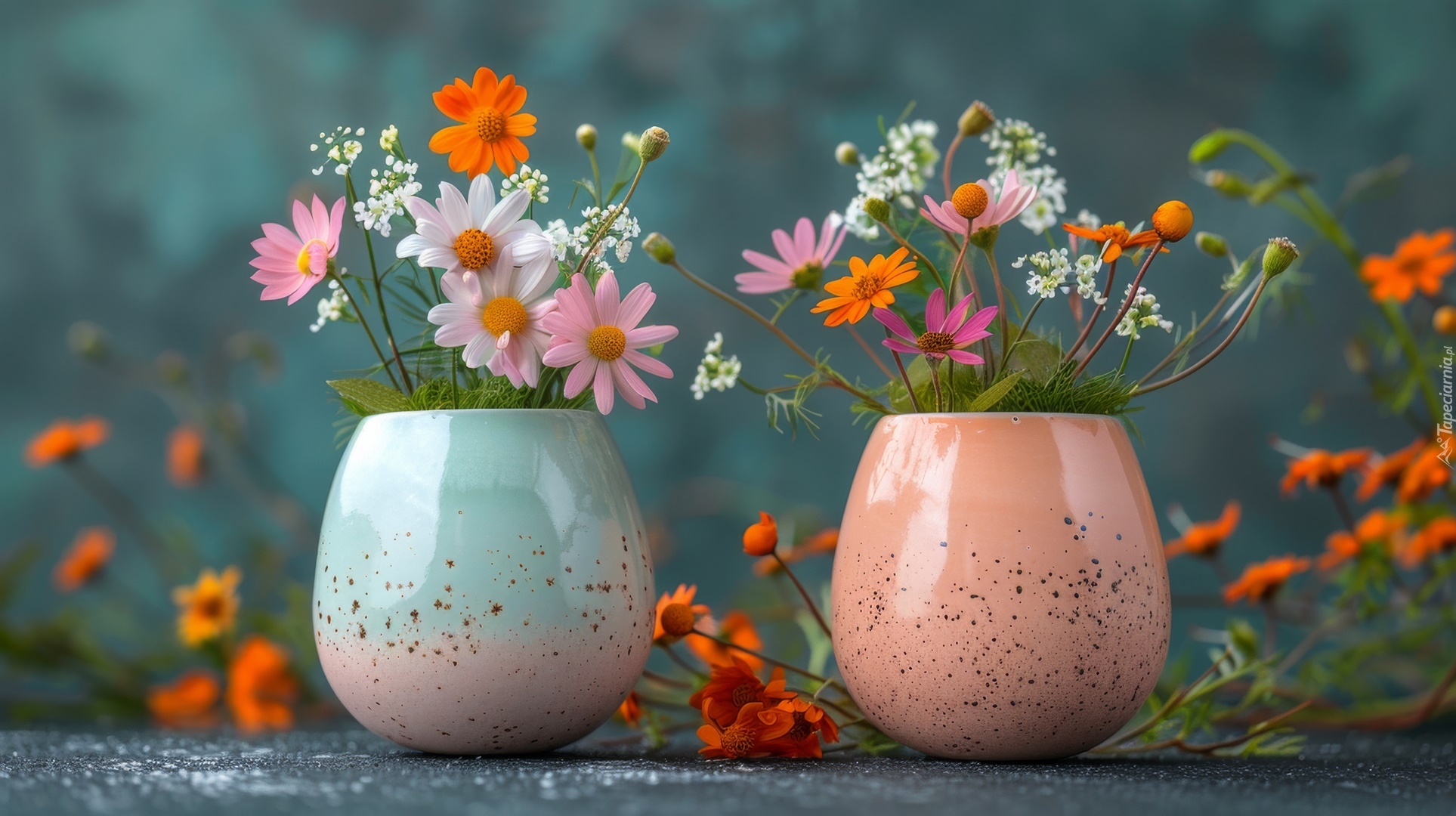 Edytor tapety: Polne kwiaty w dwóch kolorowych wazonach w grafice