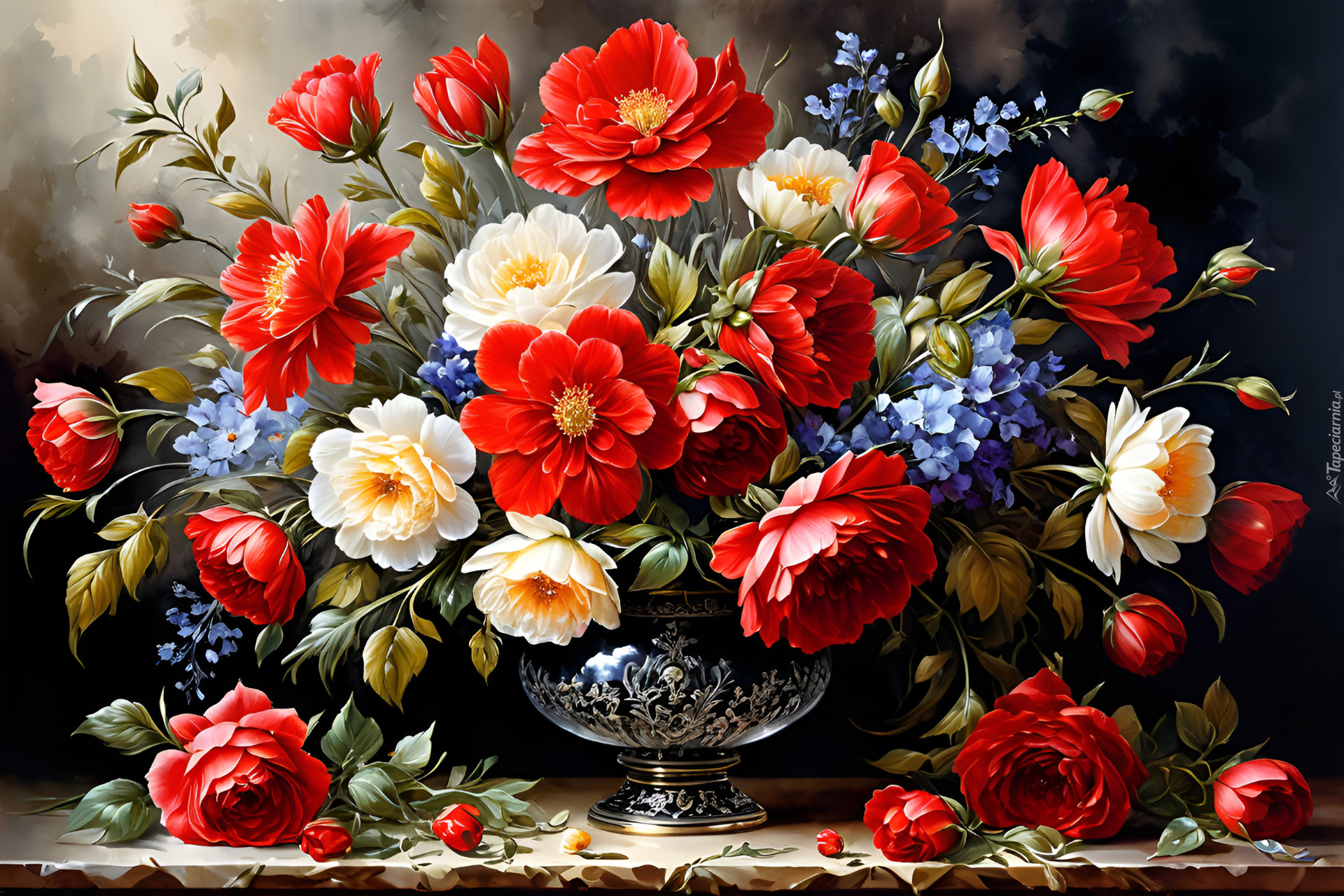 Edytor tapety: Grafika z bukietem kolorowych kwiatów w wazie