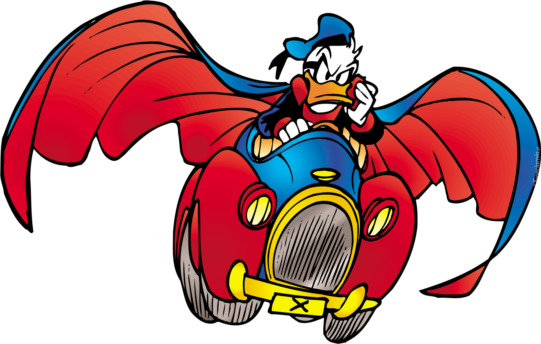 Edytor tapety: Kaczor Donald, peleryna, samochód
