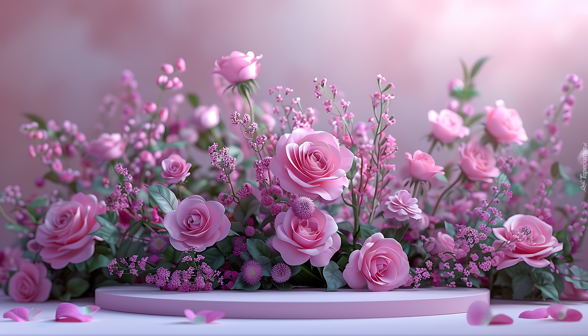 Edytor tapety: Kompozycja z różowymi różami w grafice
