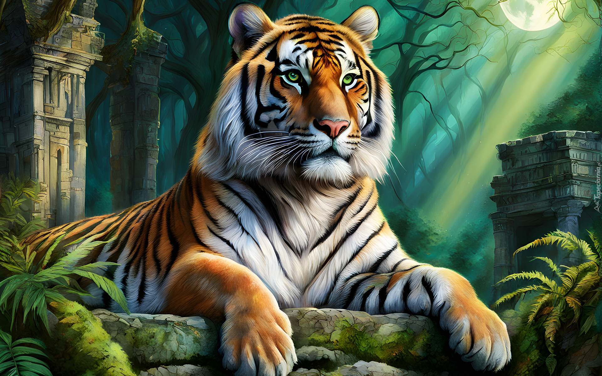 Edytor tapety: Grafika z tygrysem leżącym na kamieniach