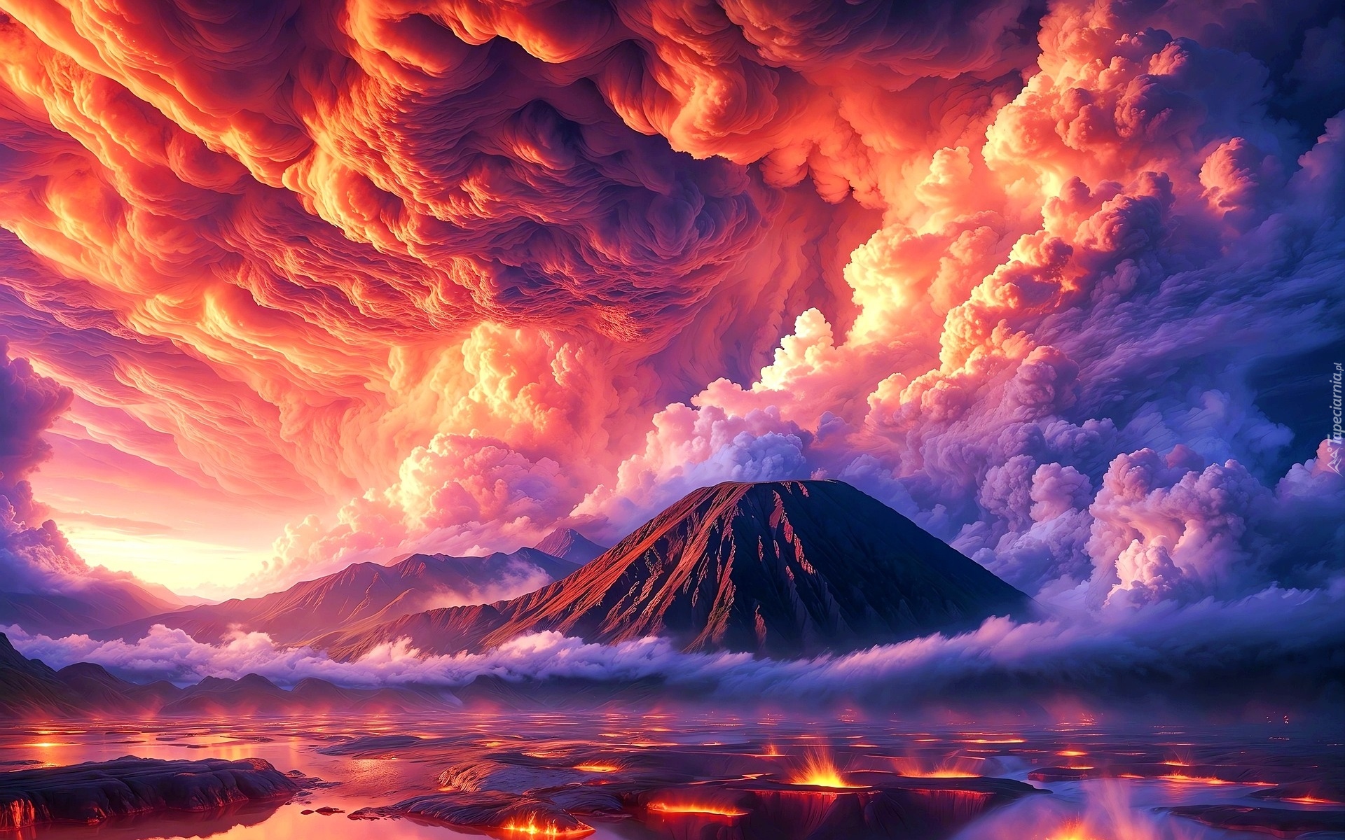 Edytor tapety: Erupcja wulkanu w zbliżeniu