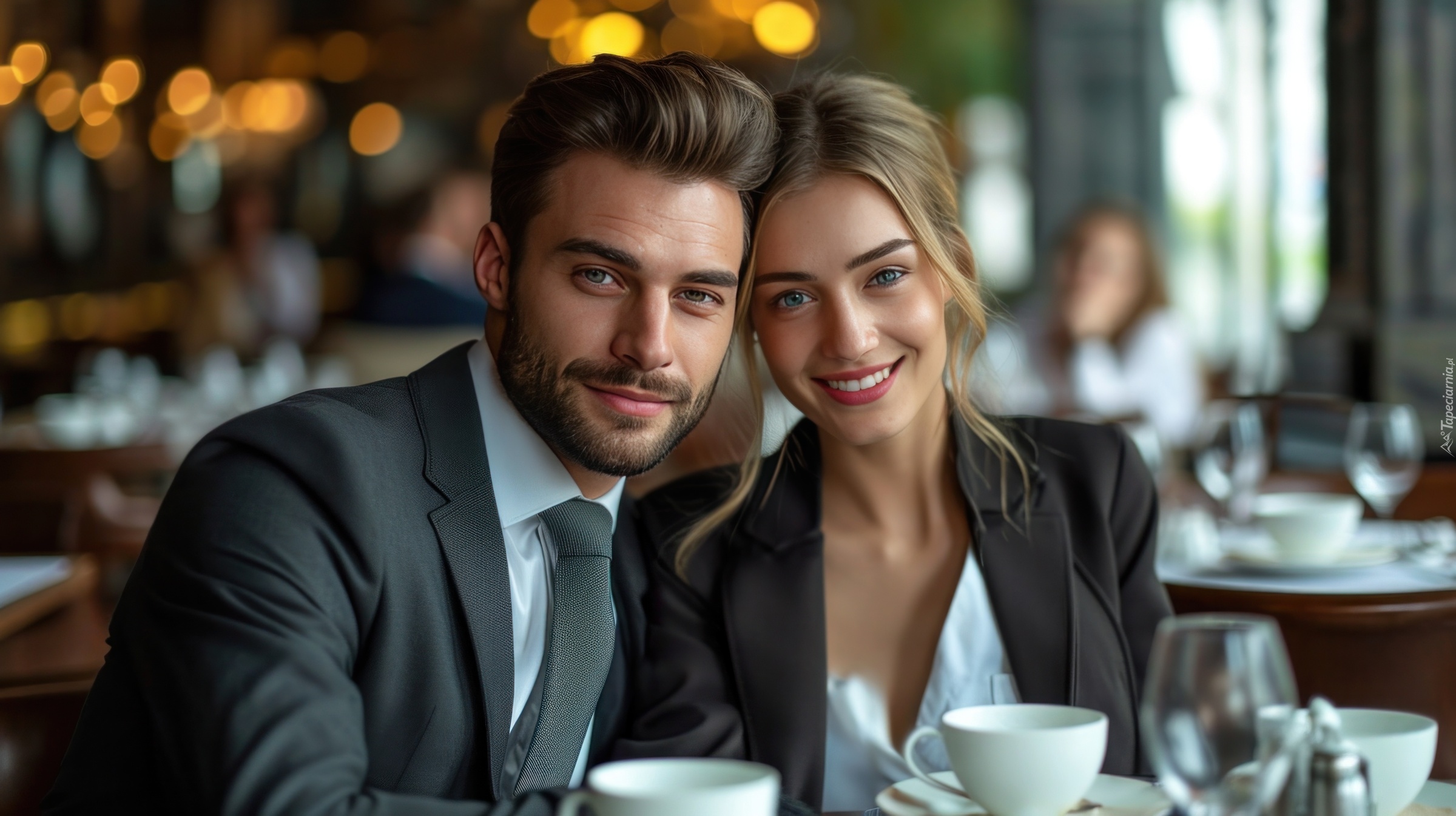 Edytor tapety: Kobieta i mężczyzna przy stoliku w kawiarni