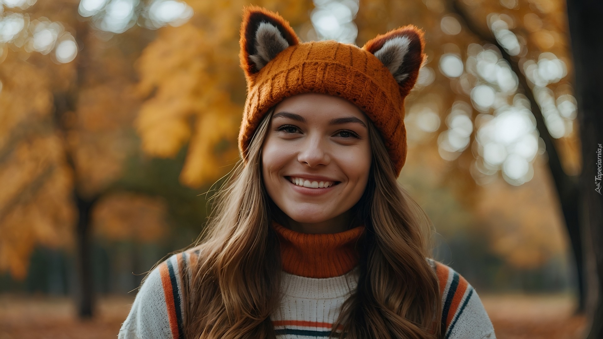 Edytor tapety: Uśmiechnięta dziewczyna w golfie i czapce z uszami