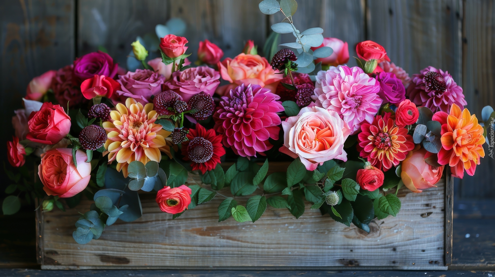Edytor tapety: Różne kolorowe kwiaty w skrzynce
