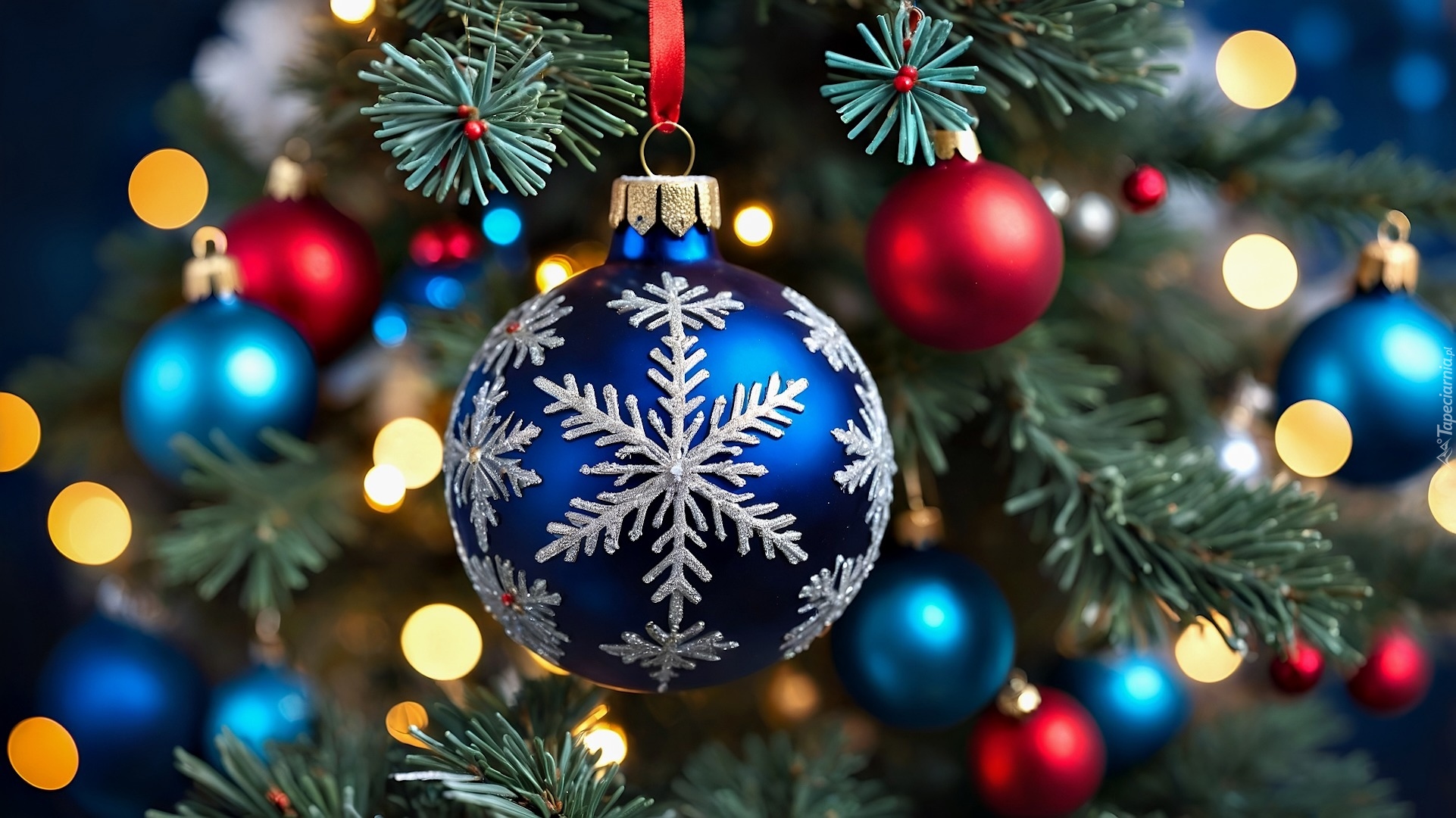 Edytor tapety: Granatowa bombka z brokatową śnieżynką
