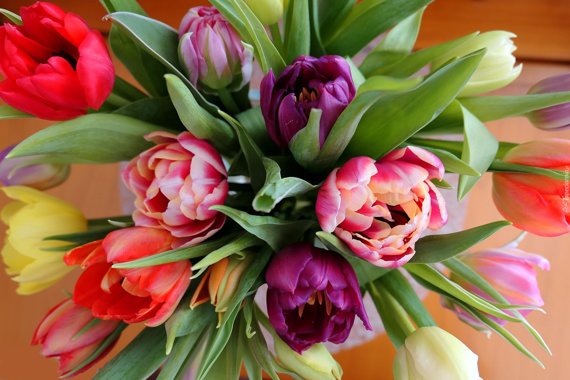 Edytor tapety: Bukiet kolorowych tulipanów