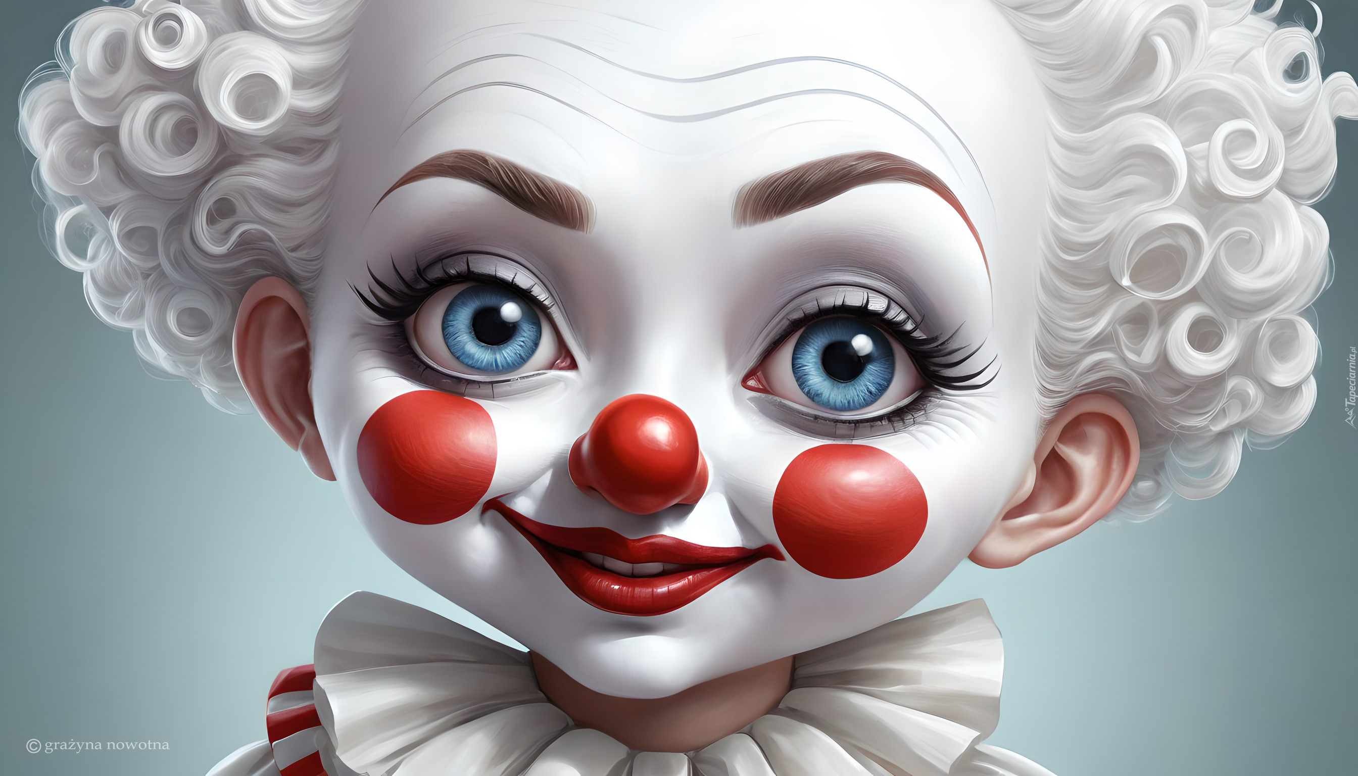 Edytor tapety: Twarz klauna z niebieskimi oczami w grafice