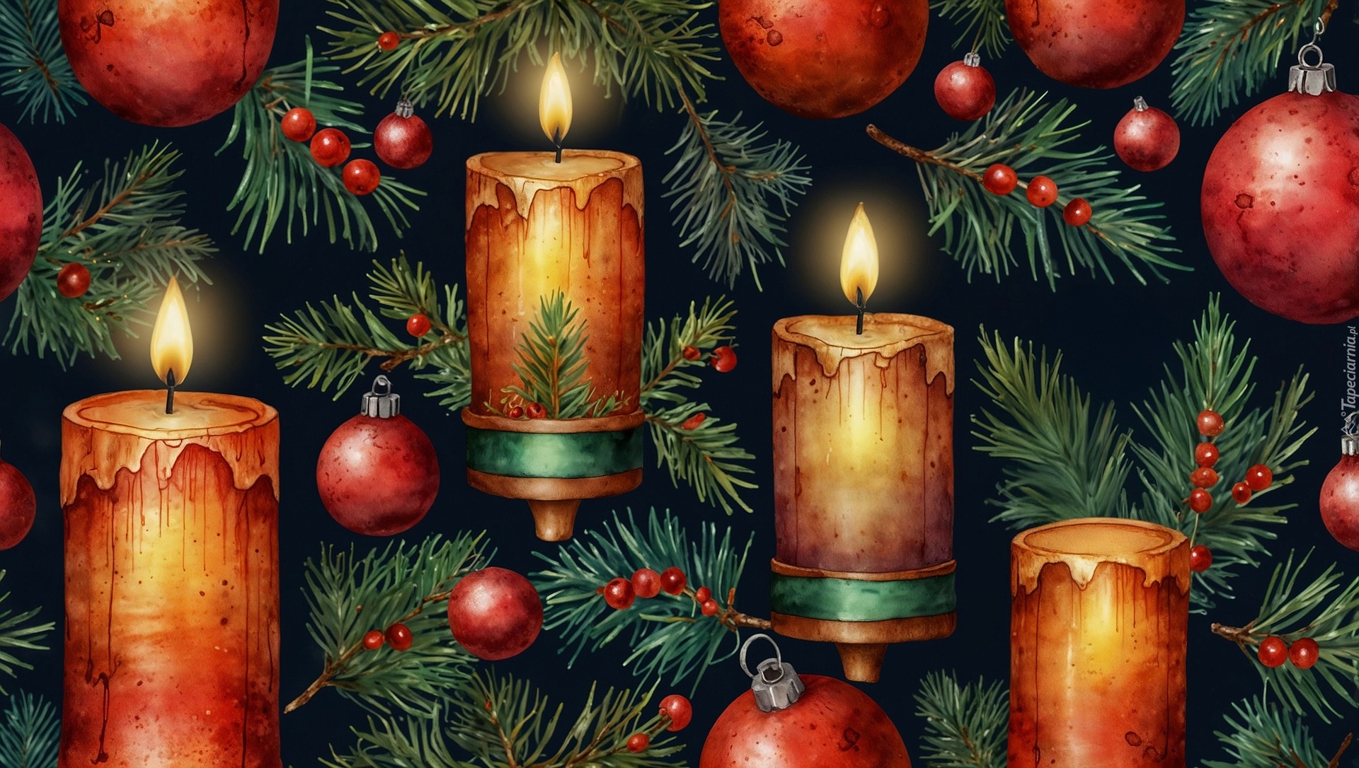 Edytor tapety: Świece i bombki na choince w grafice
