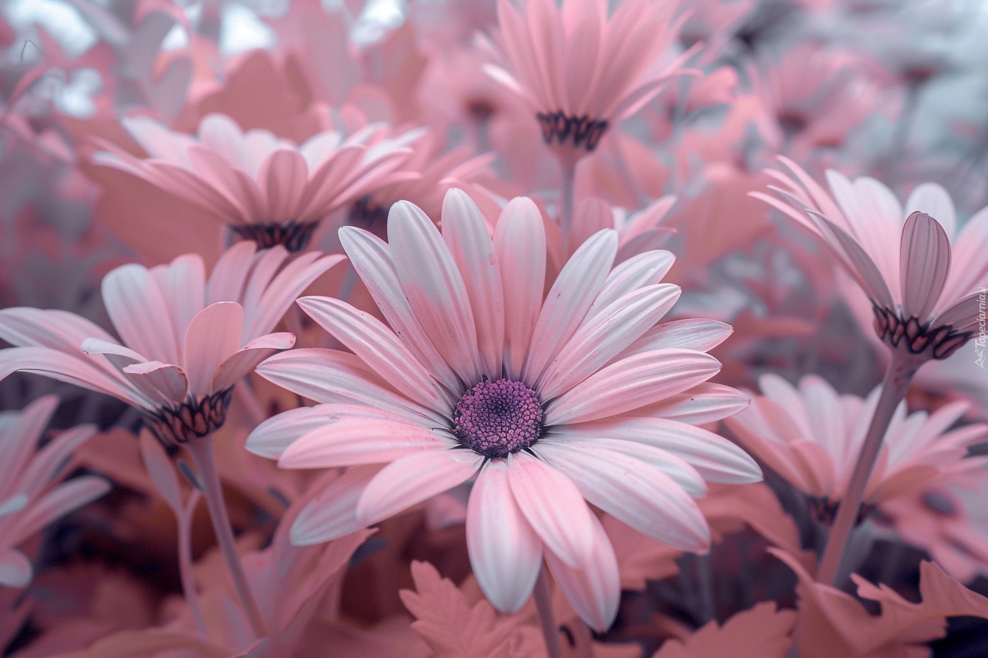 Edytor tapety: Różowe stokrotki afrykańskie w zbliżeniu