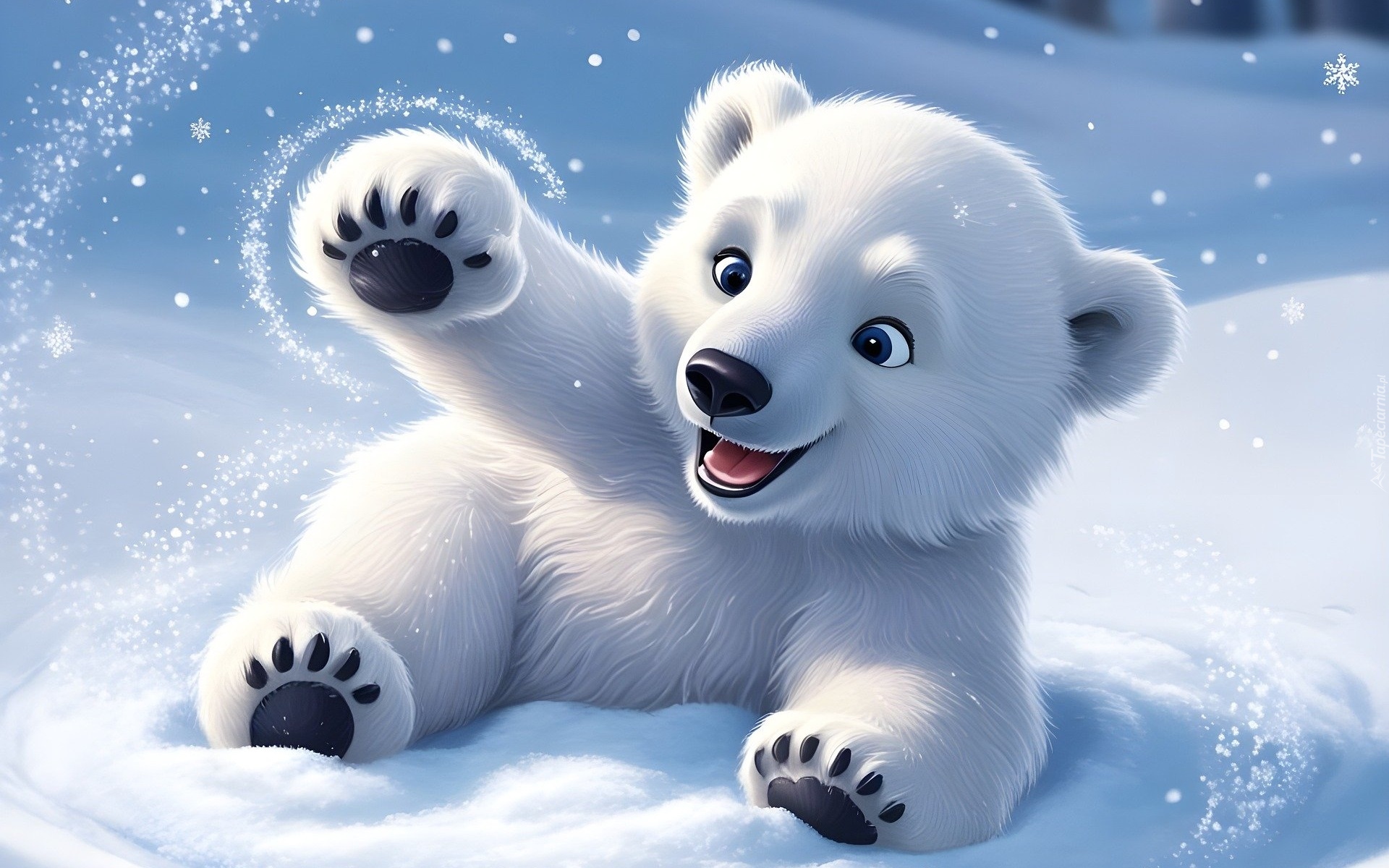 Edytor tapety: Mały biały miś na śniegu w grafice