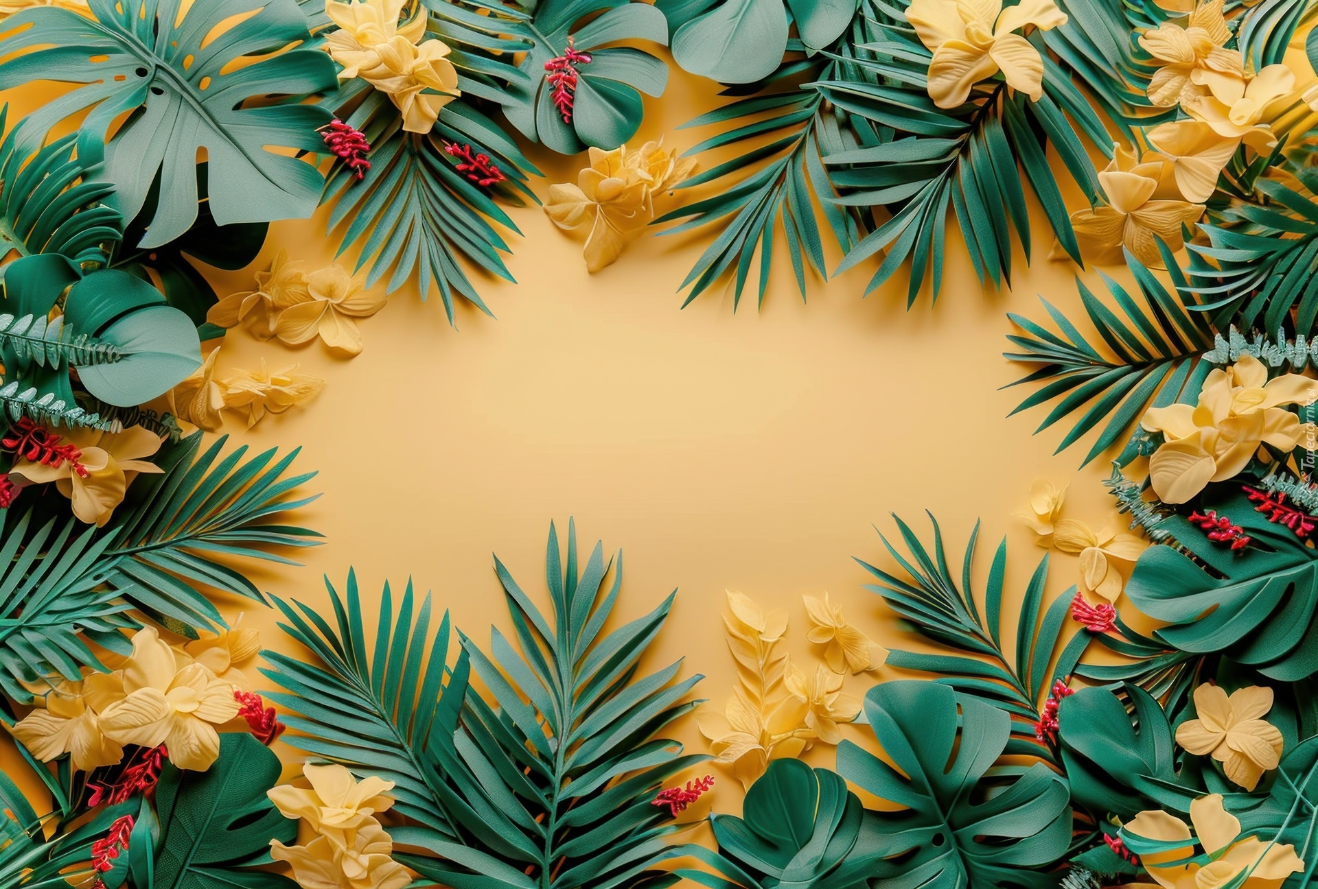 Edytor tapety: Żółte kwiaty i liście na żółtym tle